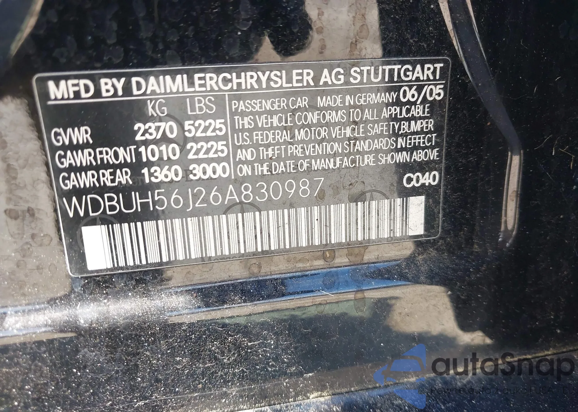 LOT: 43191348 VIN: WDBUH56J26A830987