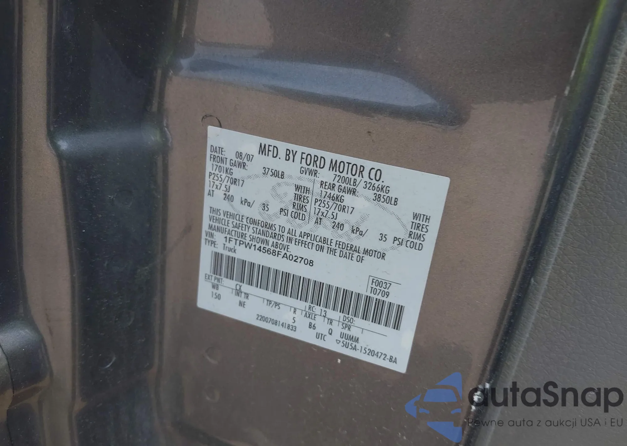 LOT: 43040131 VIN: JT8BF28G8W5014565