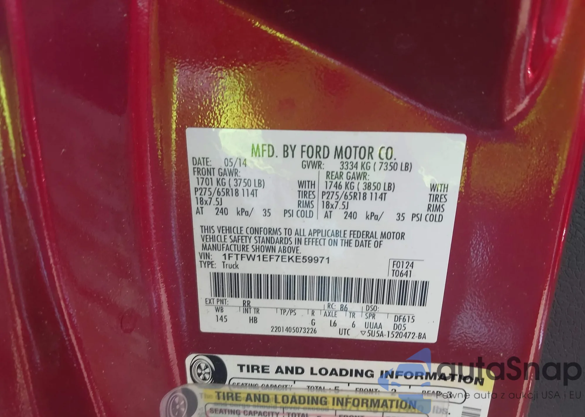 LOT: 42087617 VIN: 1FTFW1EF7EKE59971
