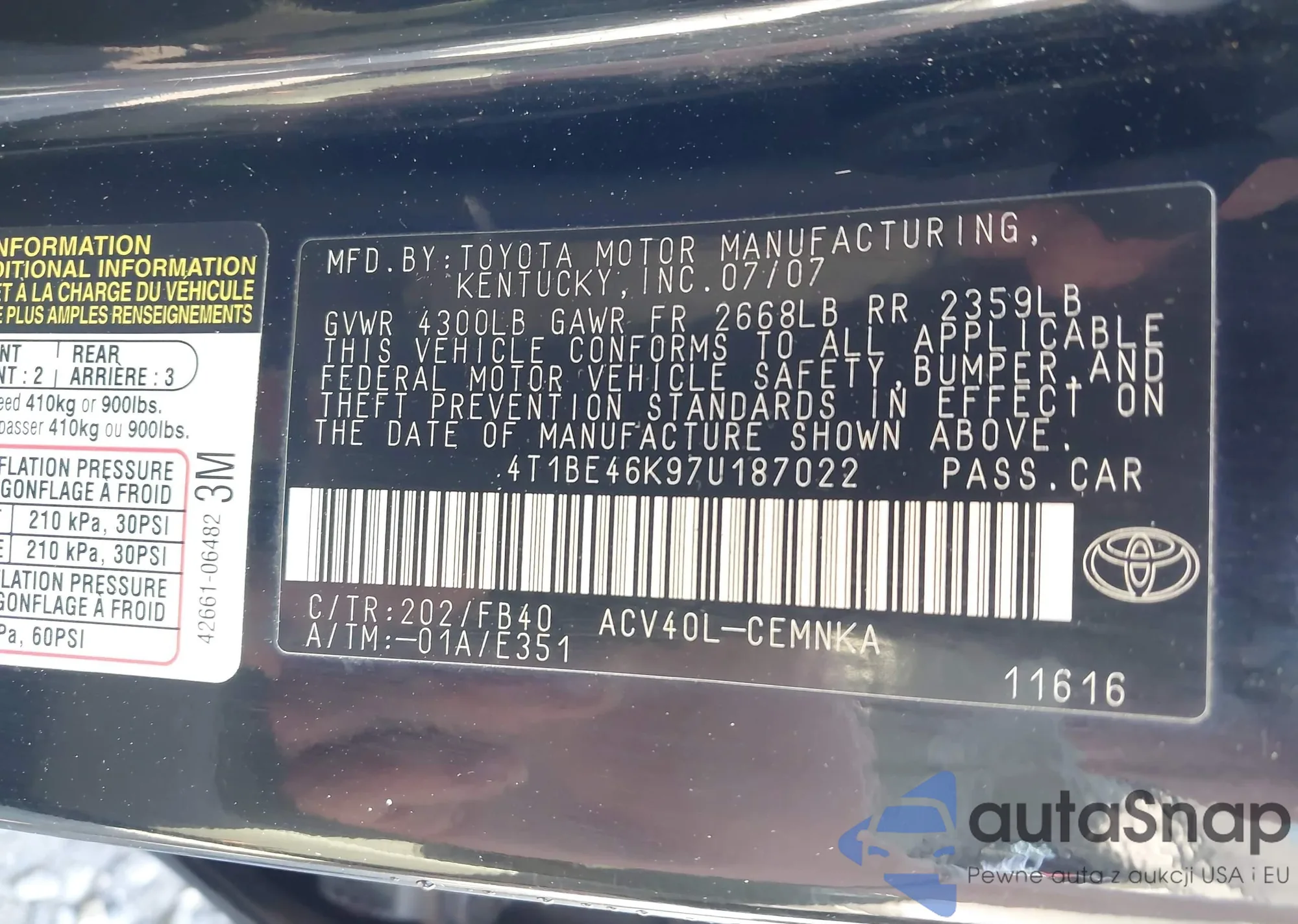• VIN 4T1BE46K97U187022