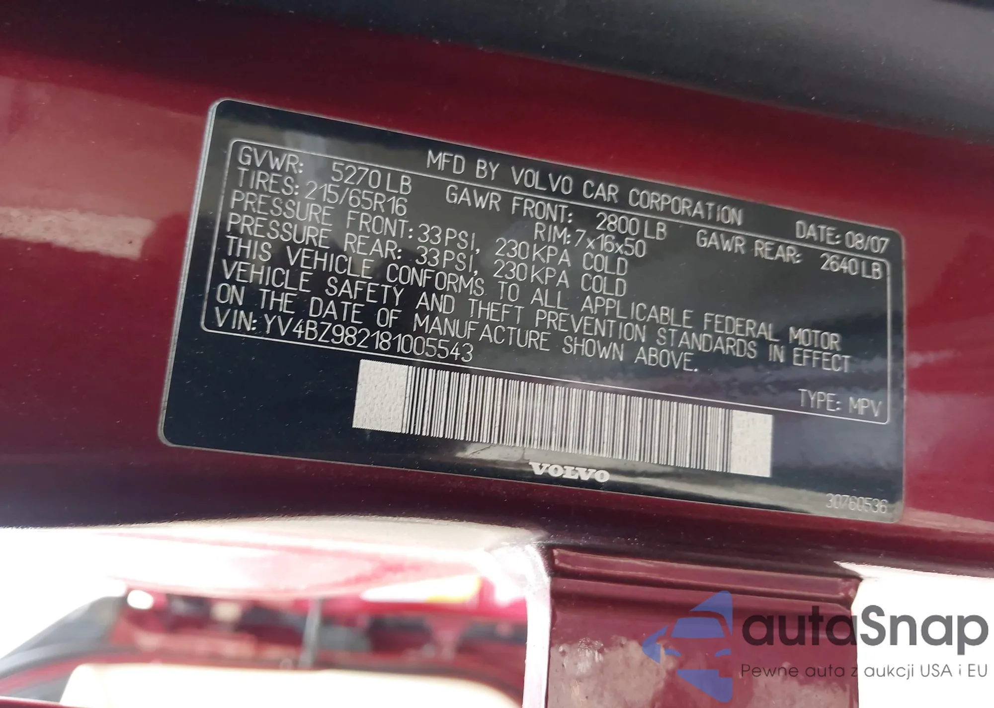 LOT: 42665314 VIN: YV4BZ982181005543