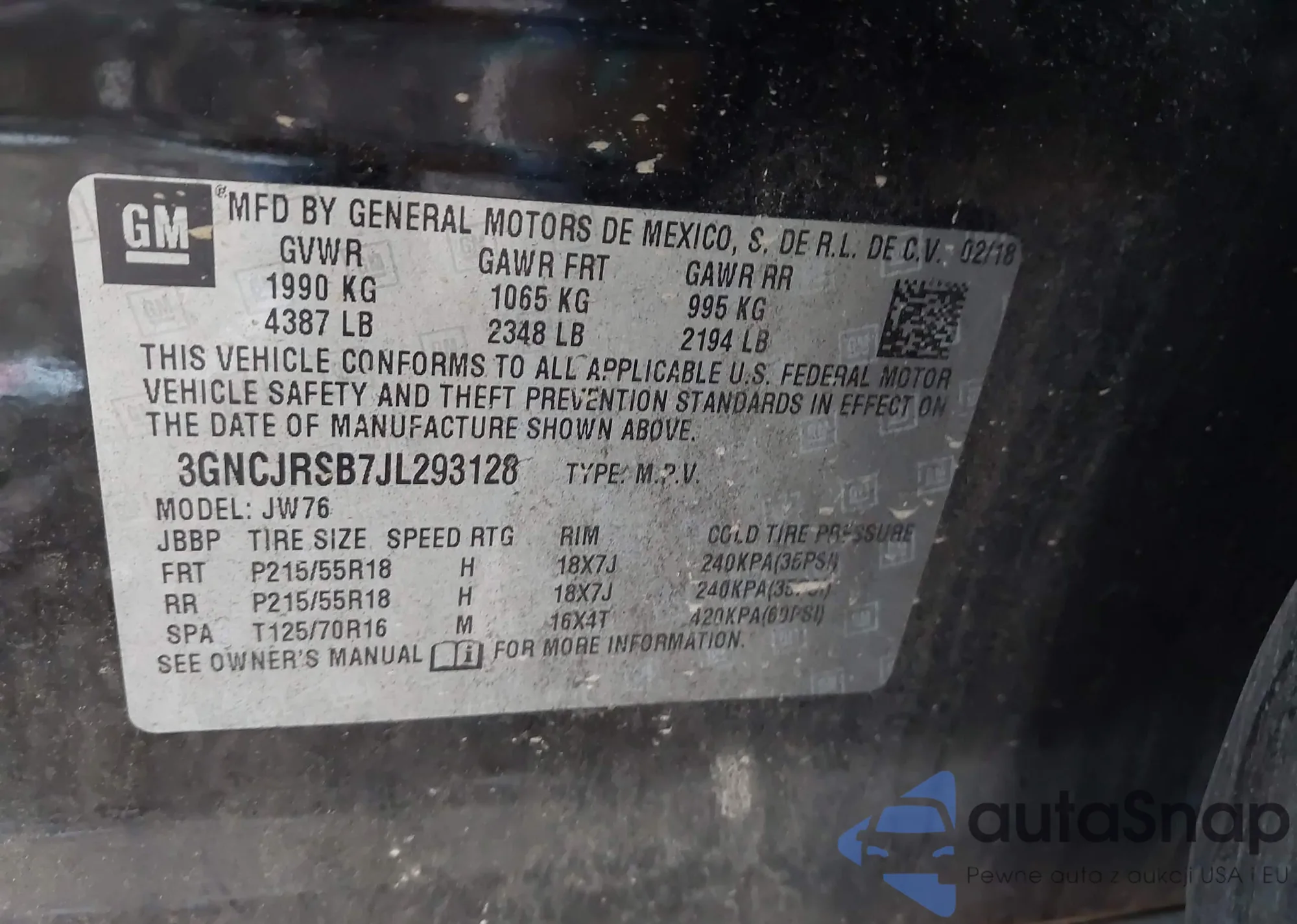 • VIN 3GNCJRSB7JL293128