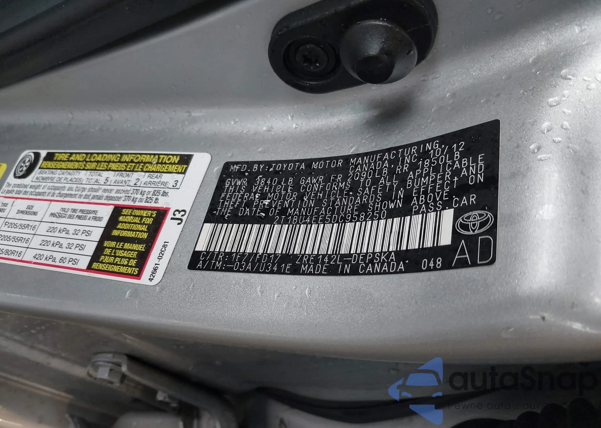 • VIN 2T1BU4EE5DC958250