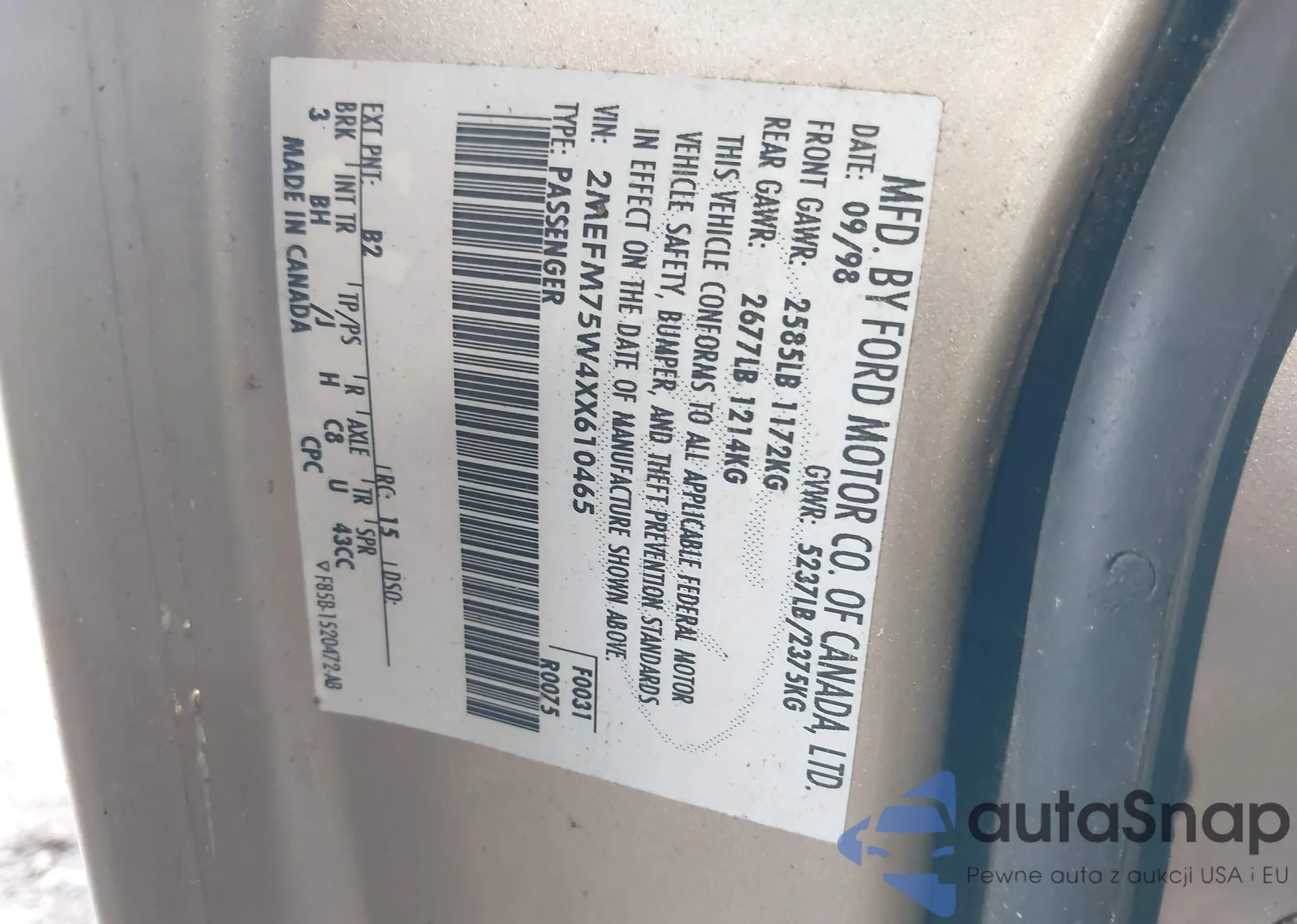 LOT: 42920686 VIN: 2MEFM75W4XX610465