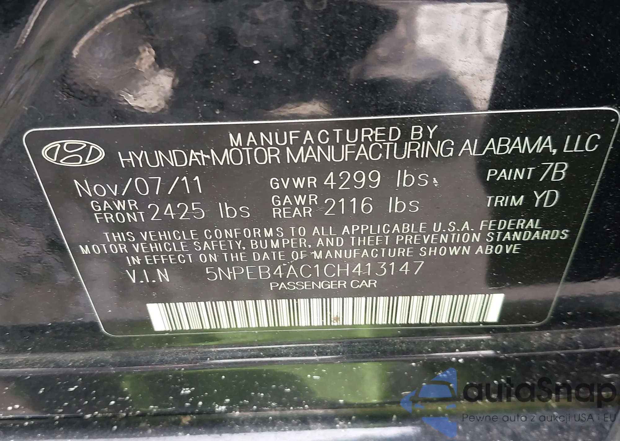 • VIN 5NPEB4AC1CH413147