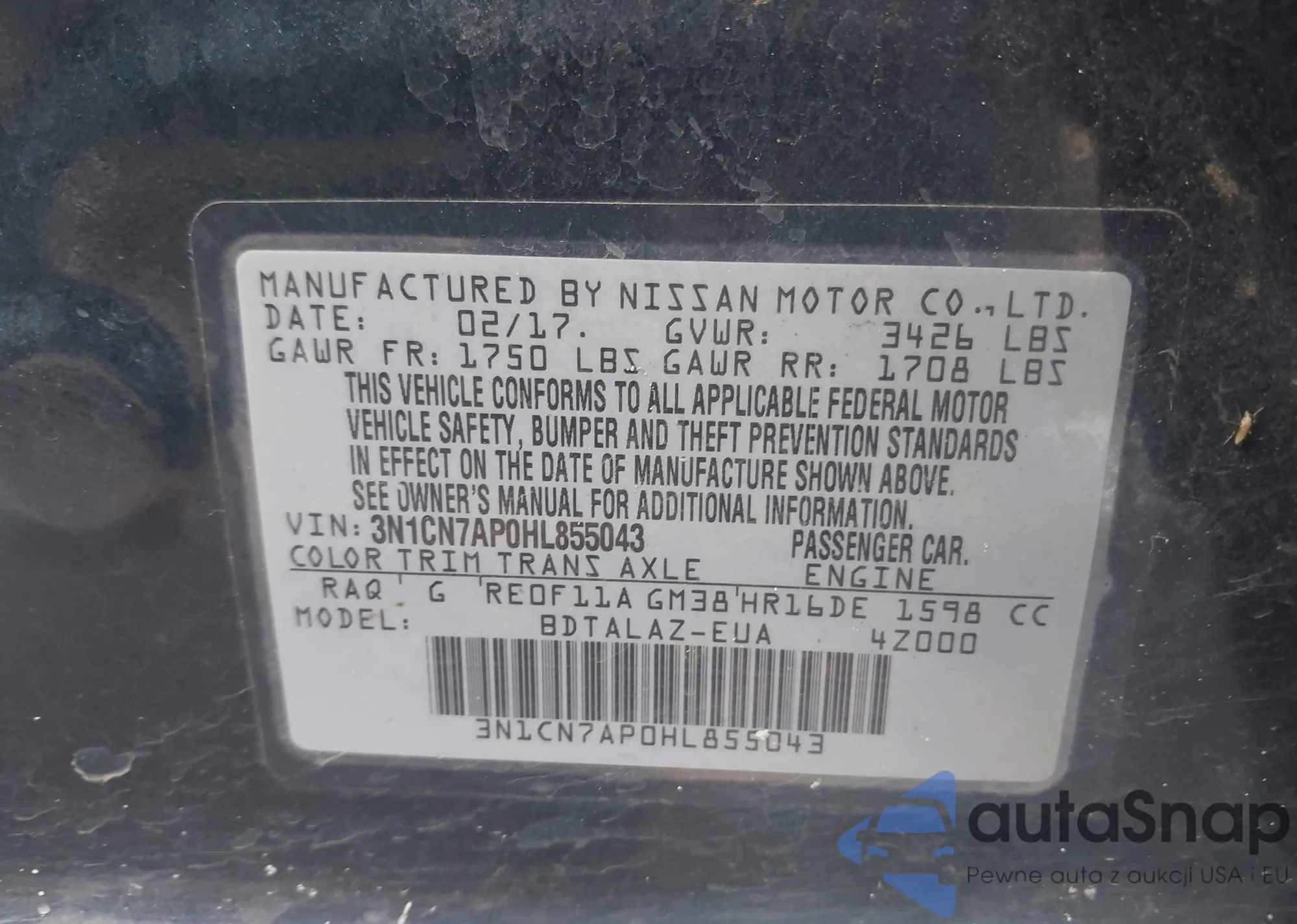 • VIN 1N4BL4CV2NN314179