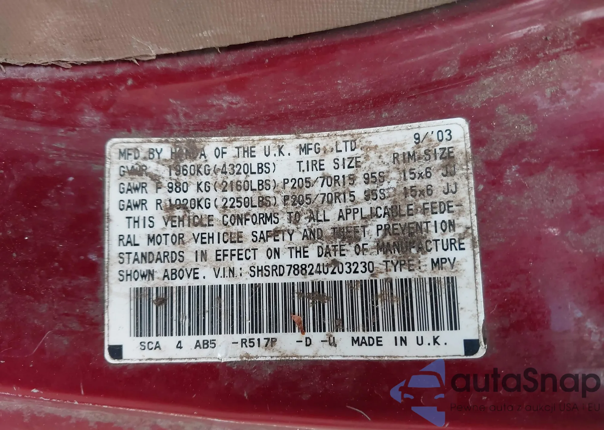 LOT: 42972032 VIN: KMHDN45DX3U540244