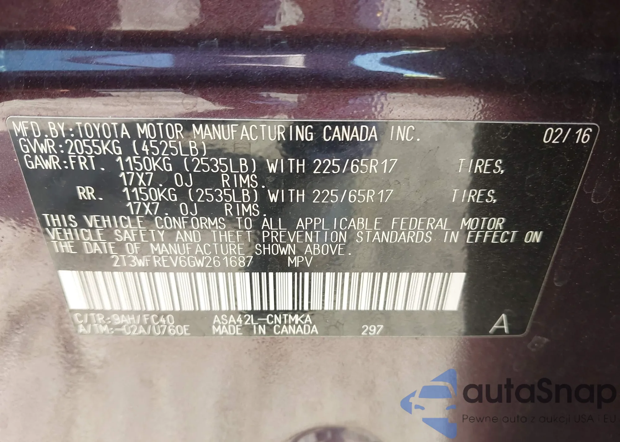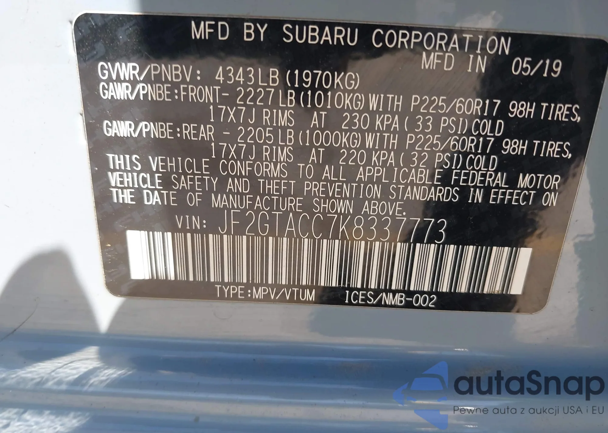 LOT: 43107170 VIN: JF2GTACC7K8337773