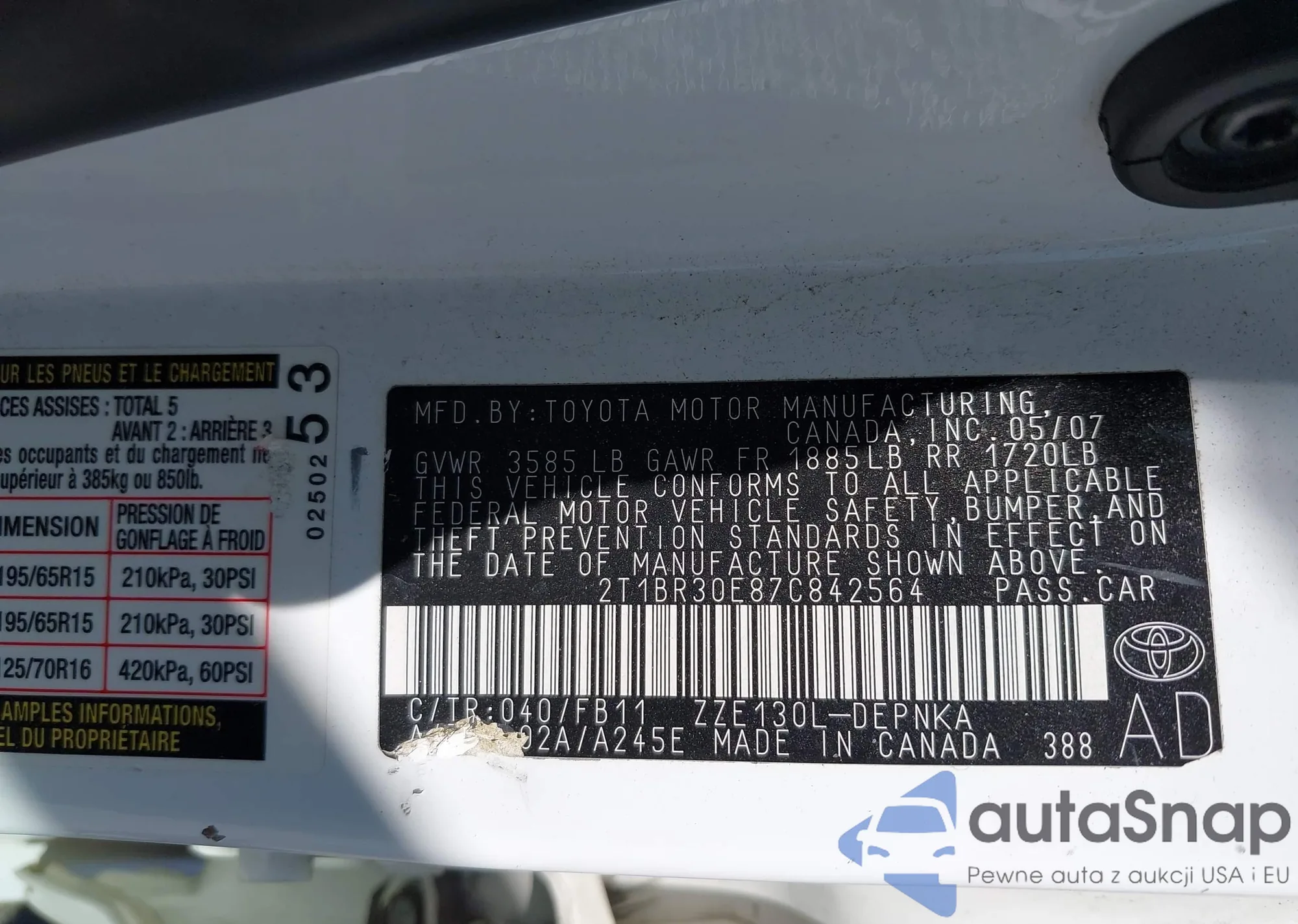 LOT: 43108081 VIN: 2T1BR30E87C842564