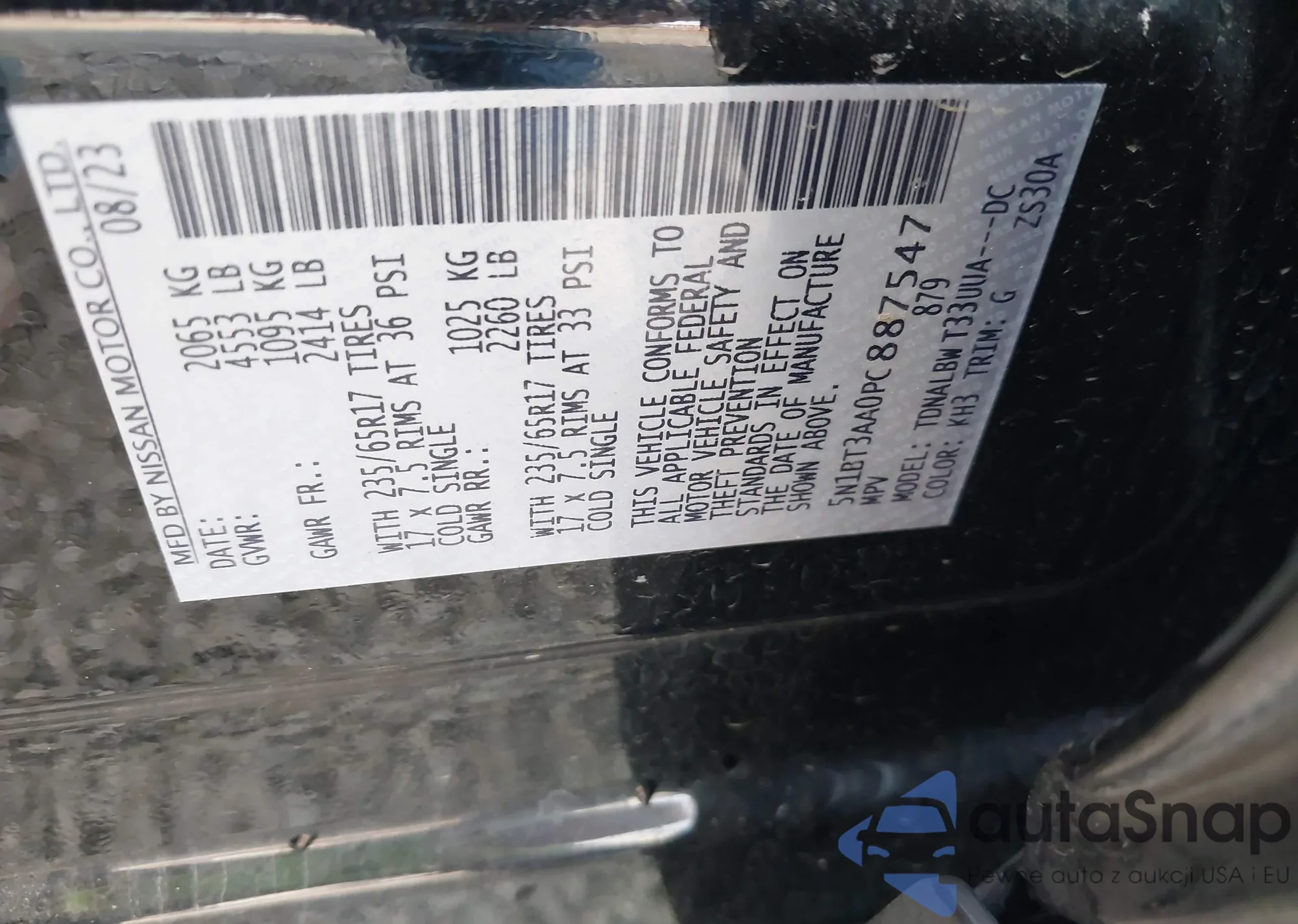 • VIN 5N1BT3AA0PC887547