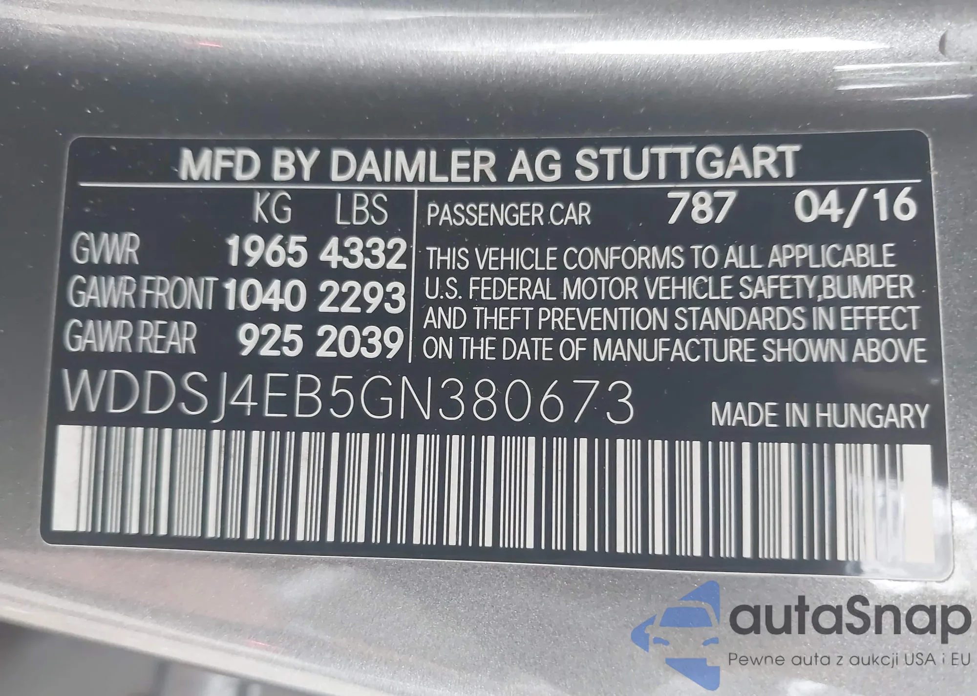 LOT: 42722178 VIN: WDDSJ4EB5GN380673