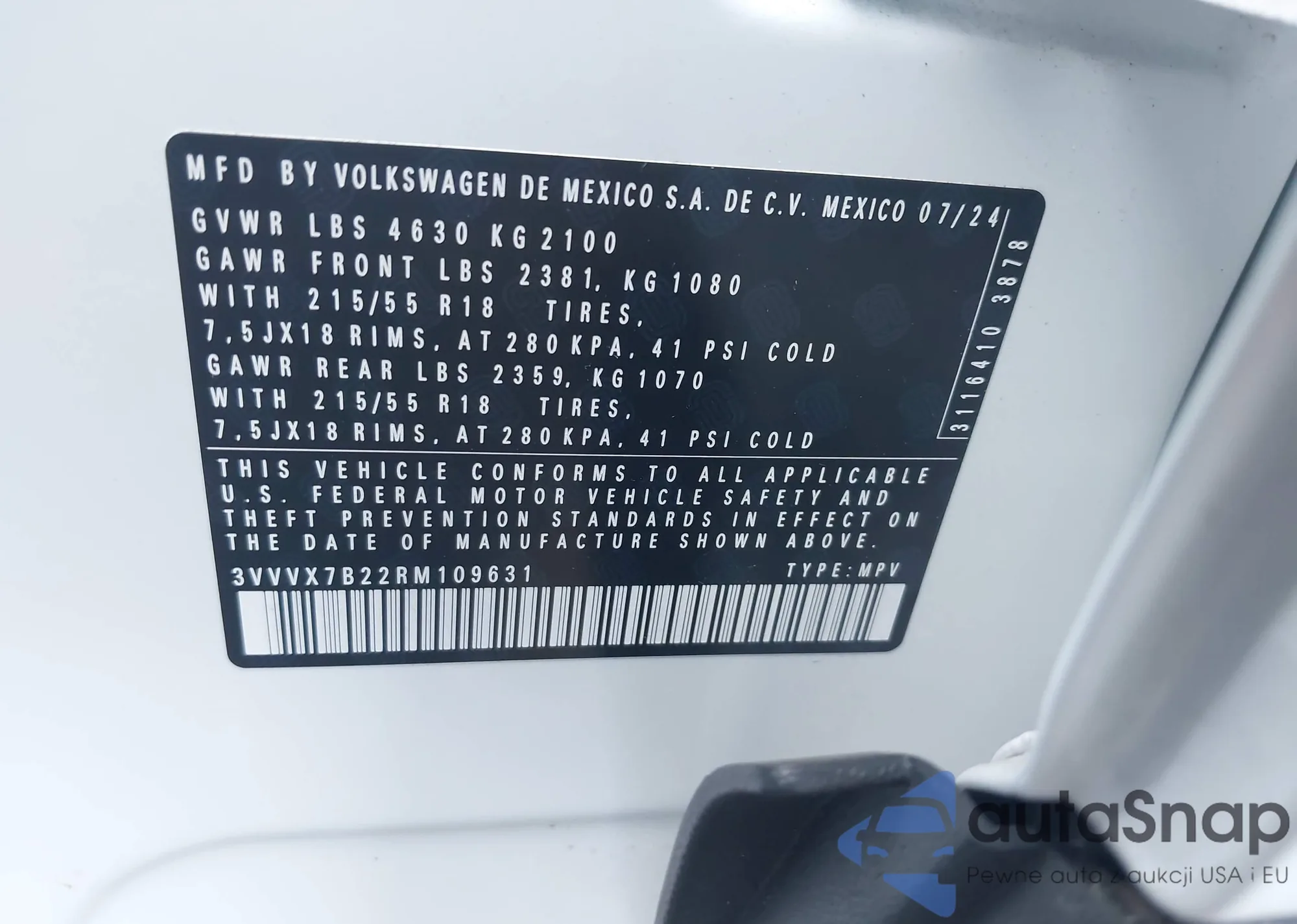 • VIN 3VVVX7B22RM109631