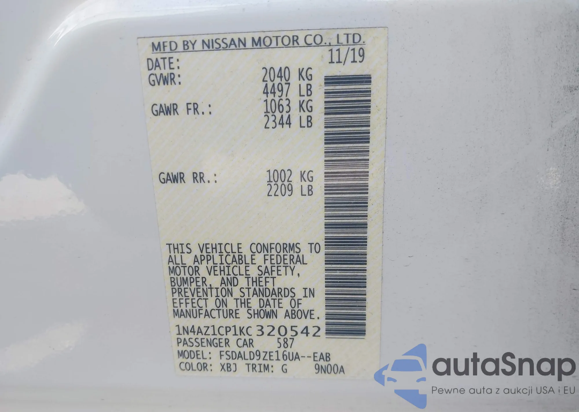• VIN 1N4BL4CV5PN334154