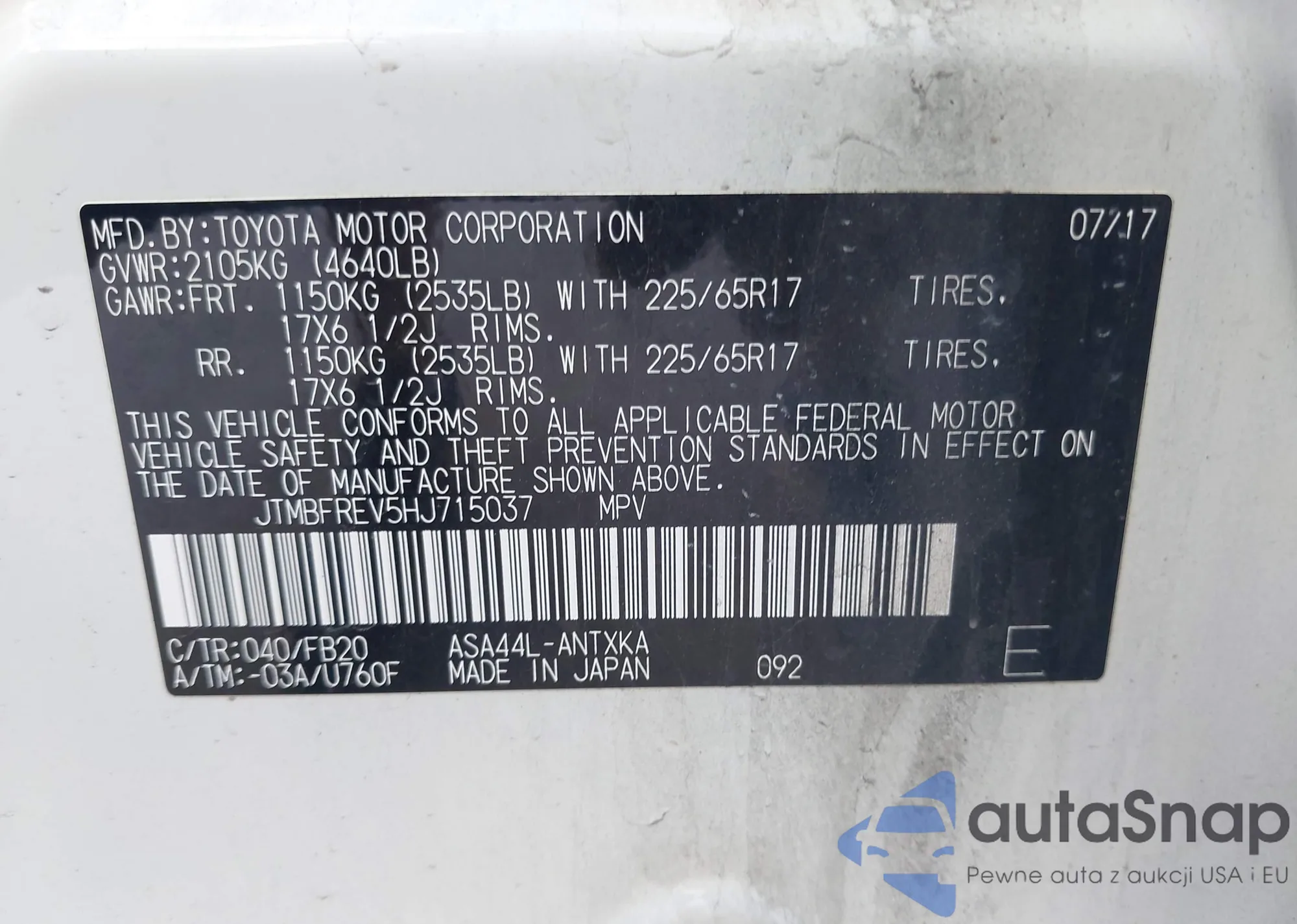 LOT: 42674117 VIN: 1FMJU1JT5HEA02098
