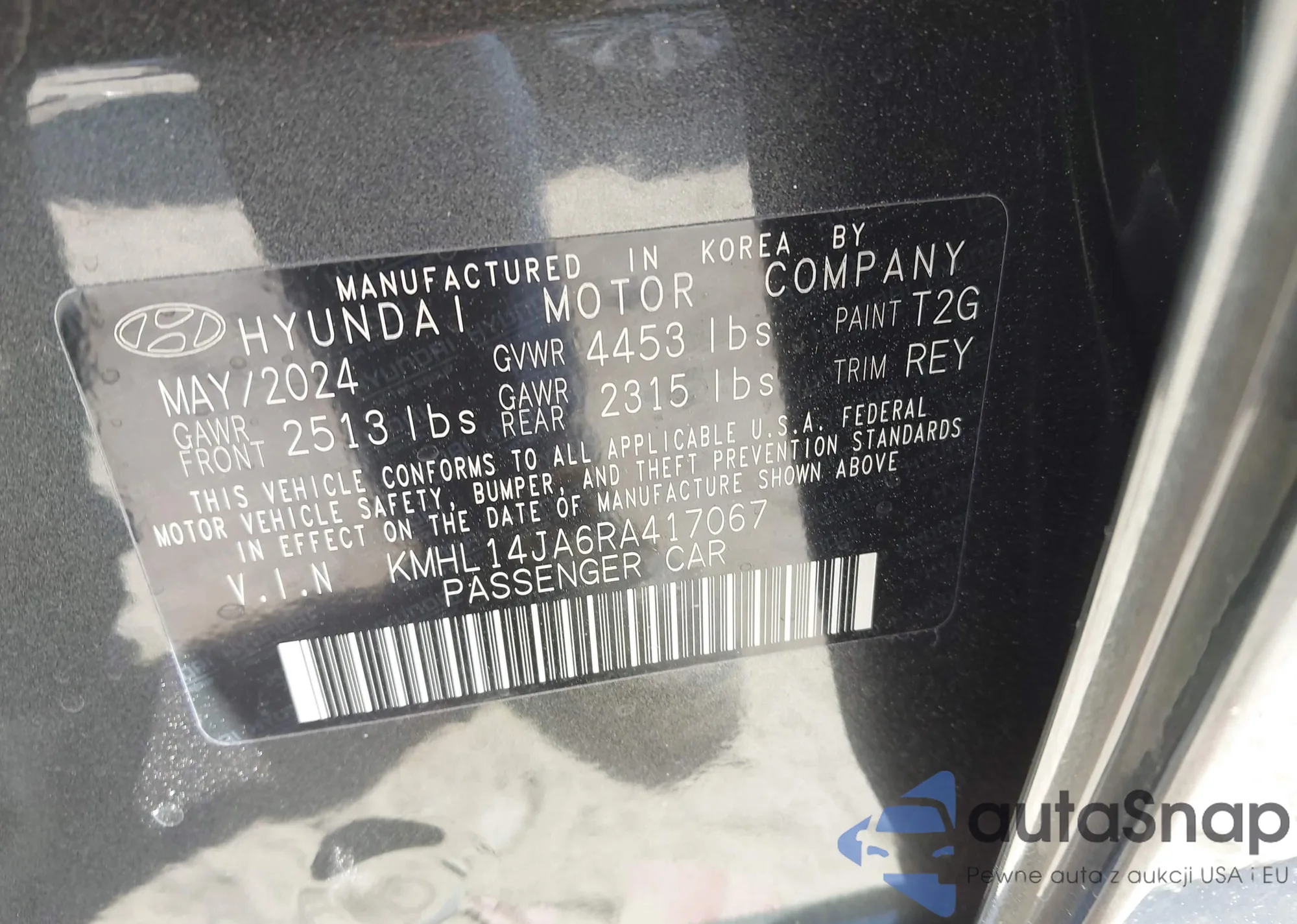 LOT: 41887577 VIN: KMHL14JA6RA417067