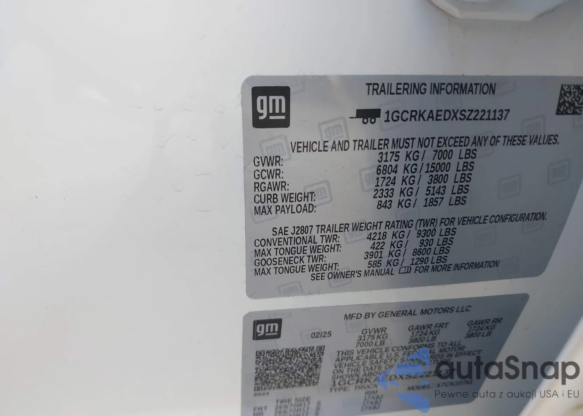 • VIN 1GCRKAEDXSZ221137