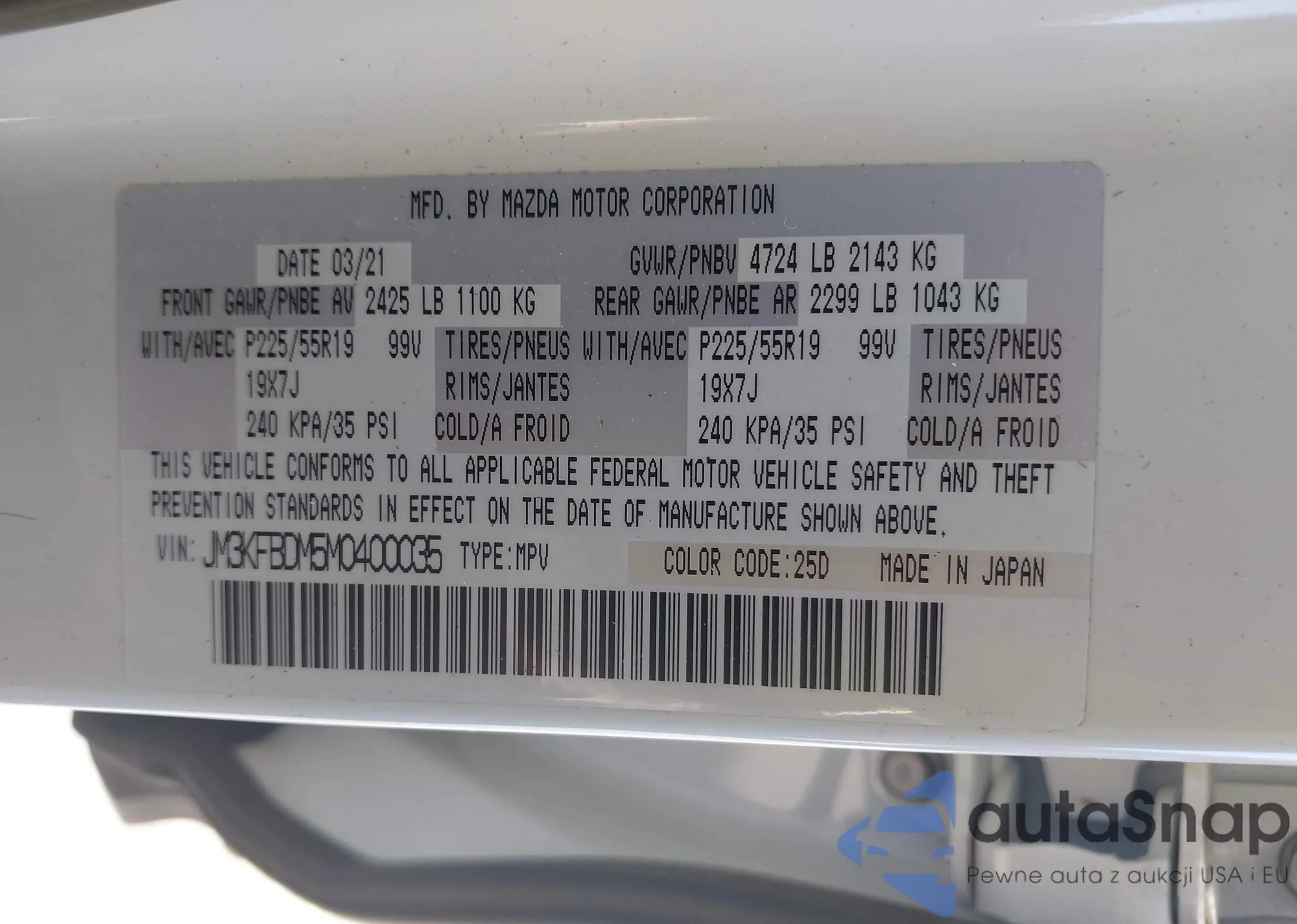 LOT: 42574836 VIN: JM3KFBDM5M0400035