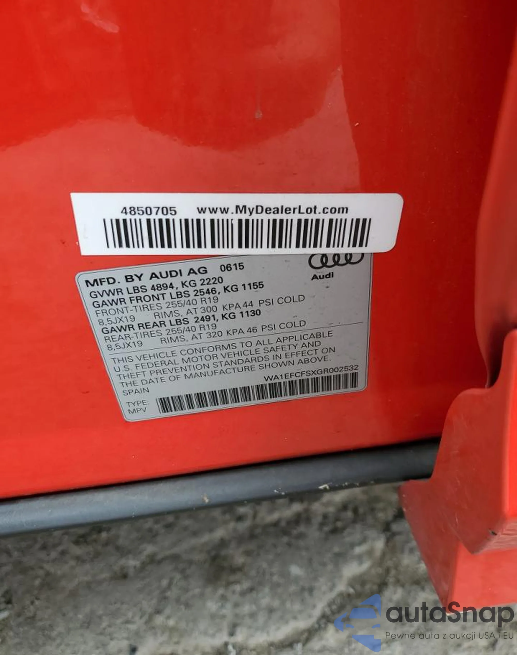 LOT: 67551725 VIN: WA1EFCFSXGR002532
