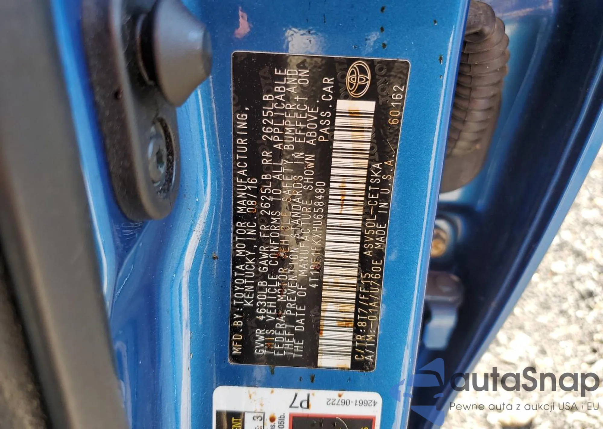 • VIN 4T1BF1FKXHU658480