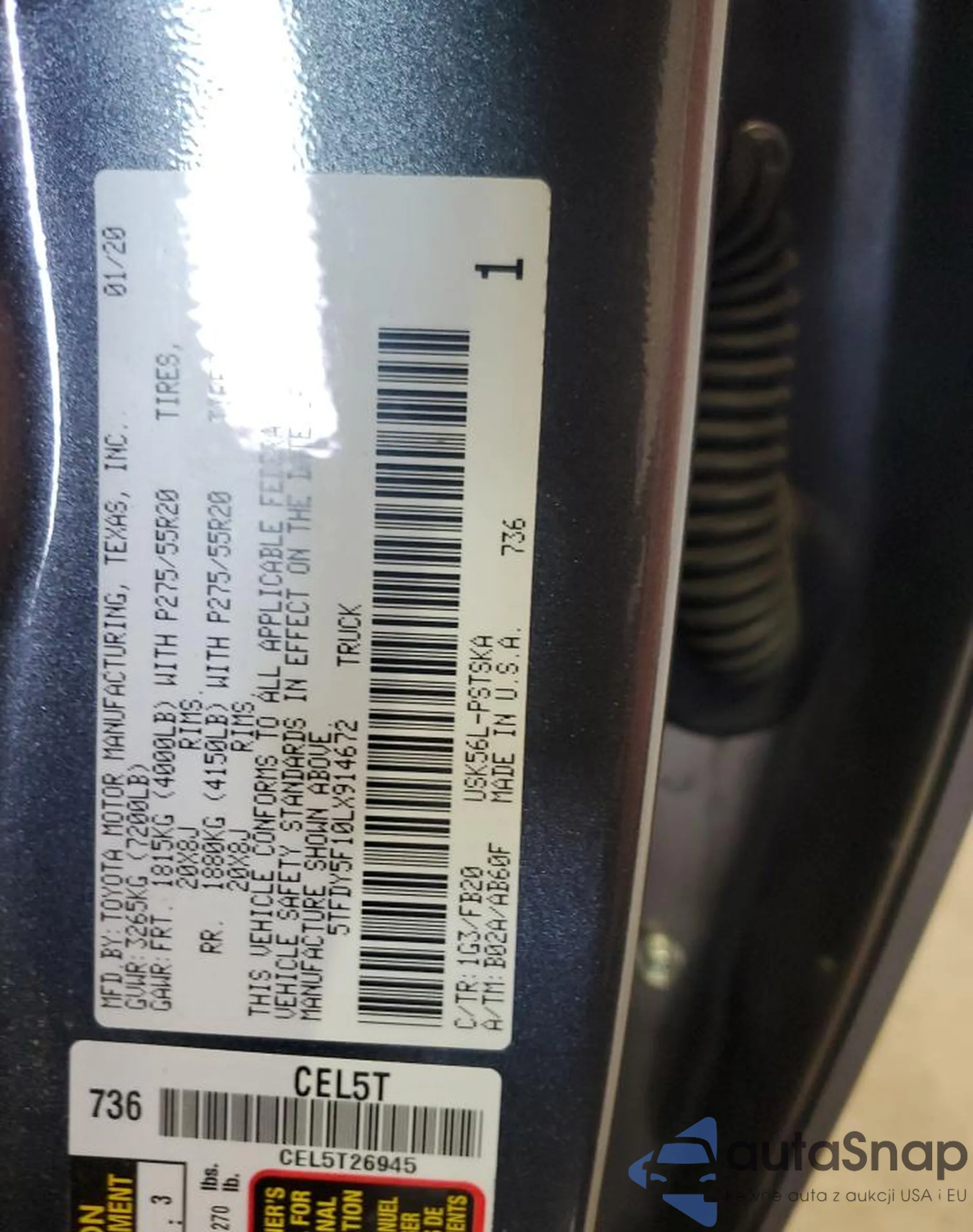 • VIN 5TFDY5F10LX914672