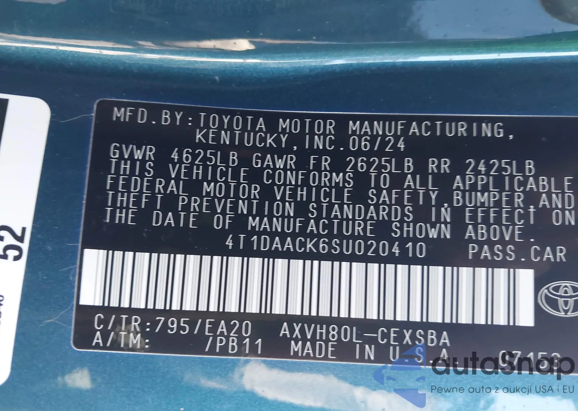 • VIN 4T1DAACK6SU020410