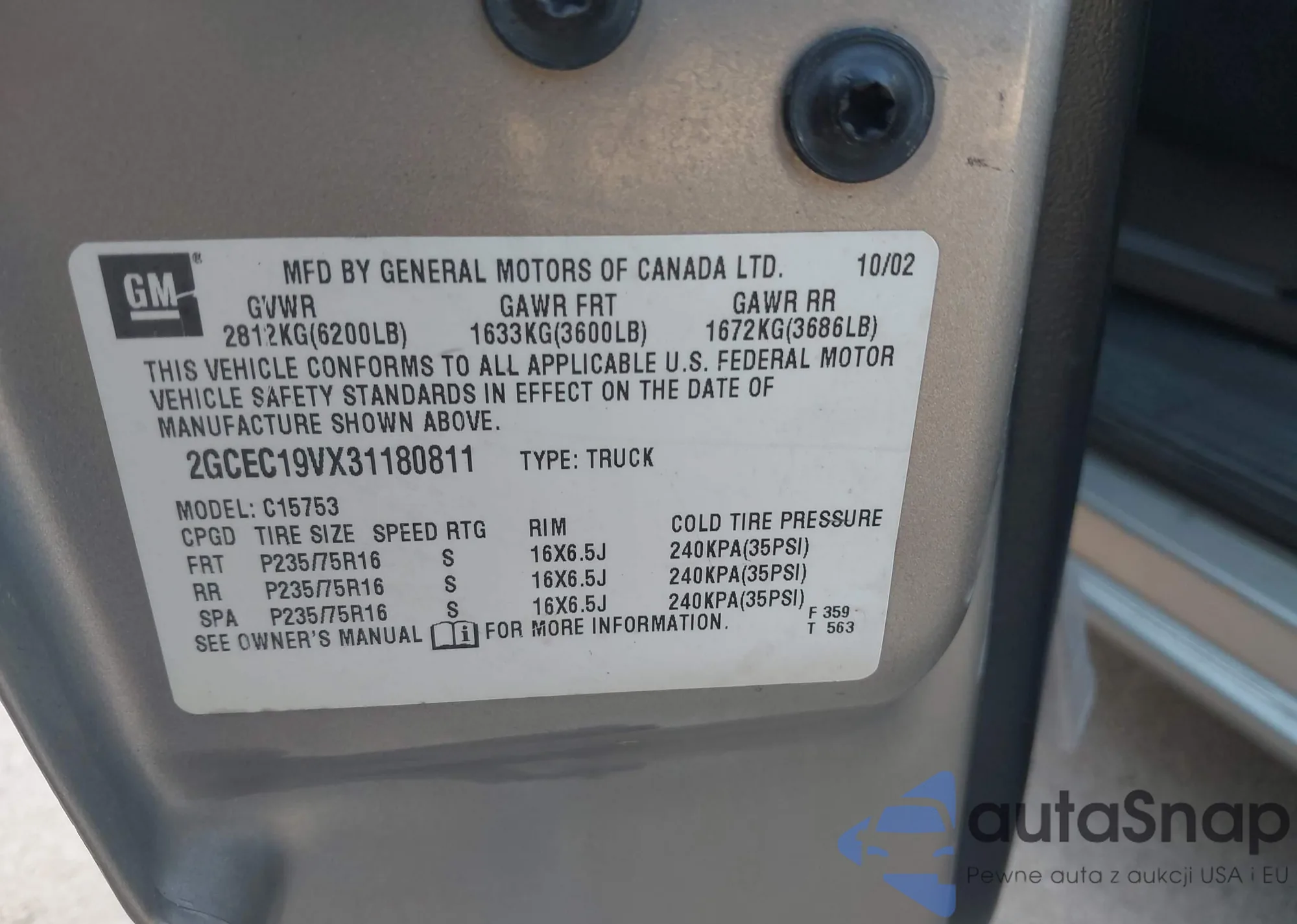 • VIN 2GCEC19VX31180811
