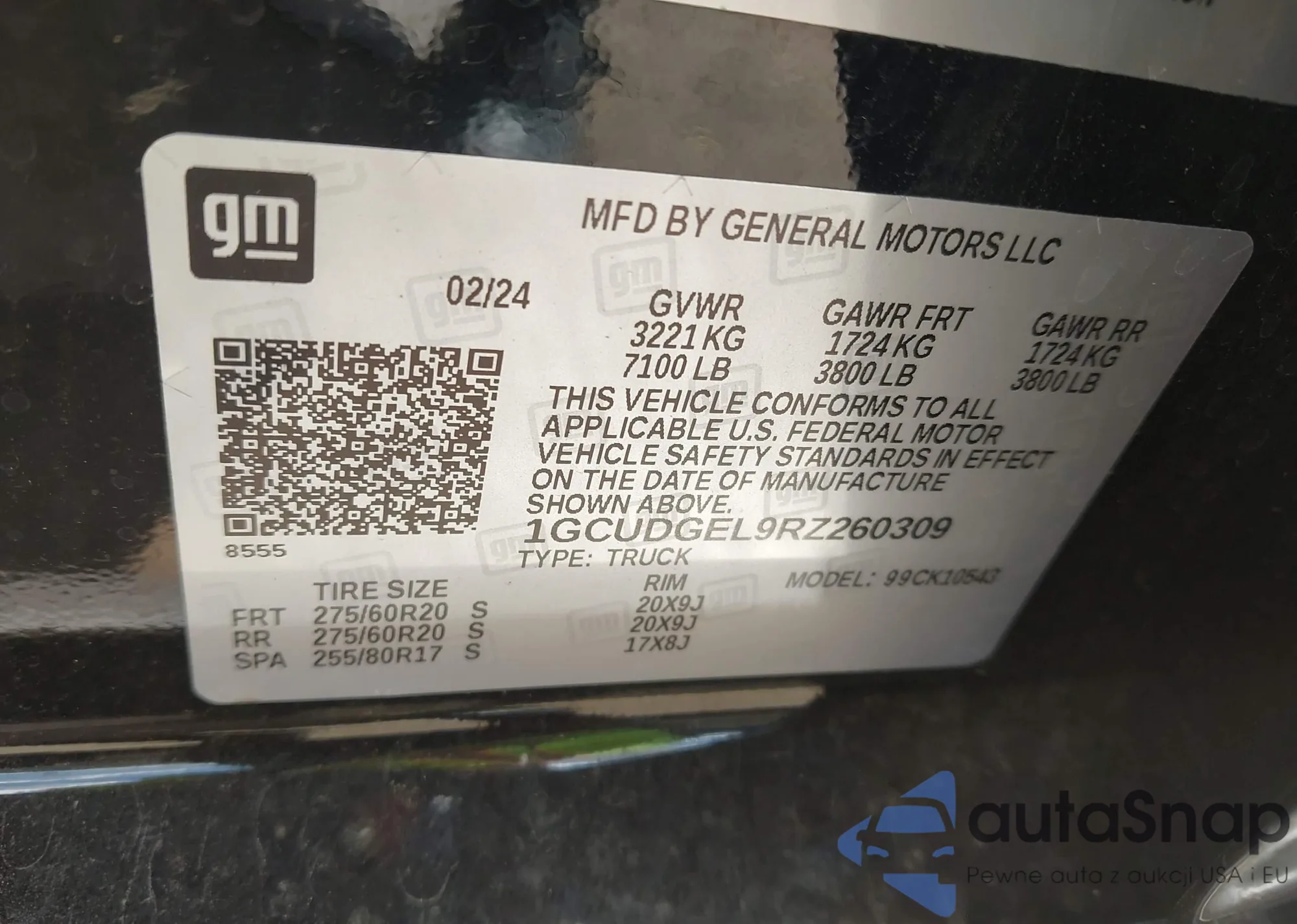 • VIN 1GCUDGEL9RZ260309