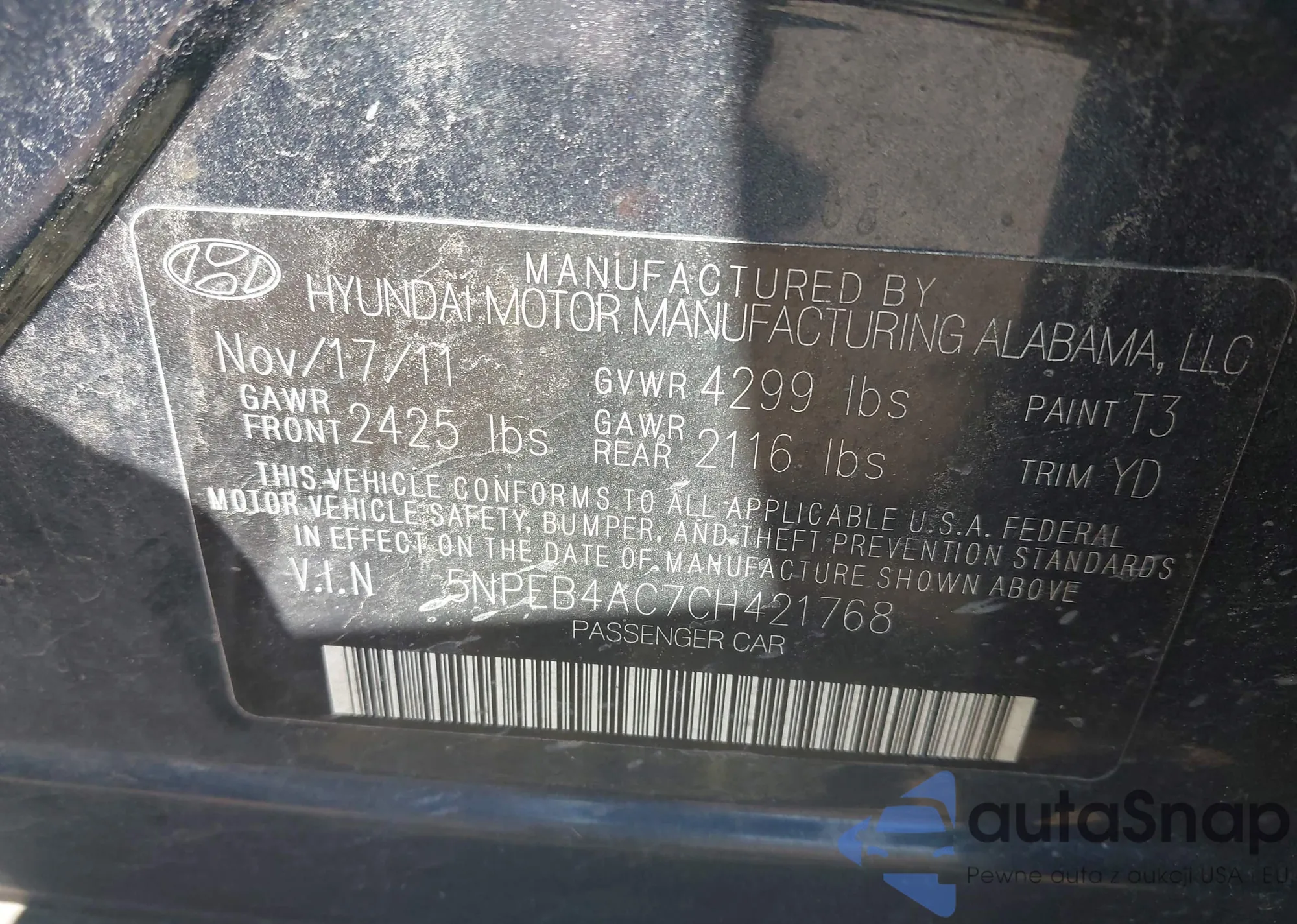 • VIN 5NPEB4AC7CH421768