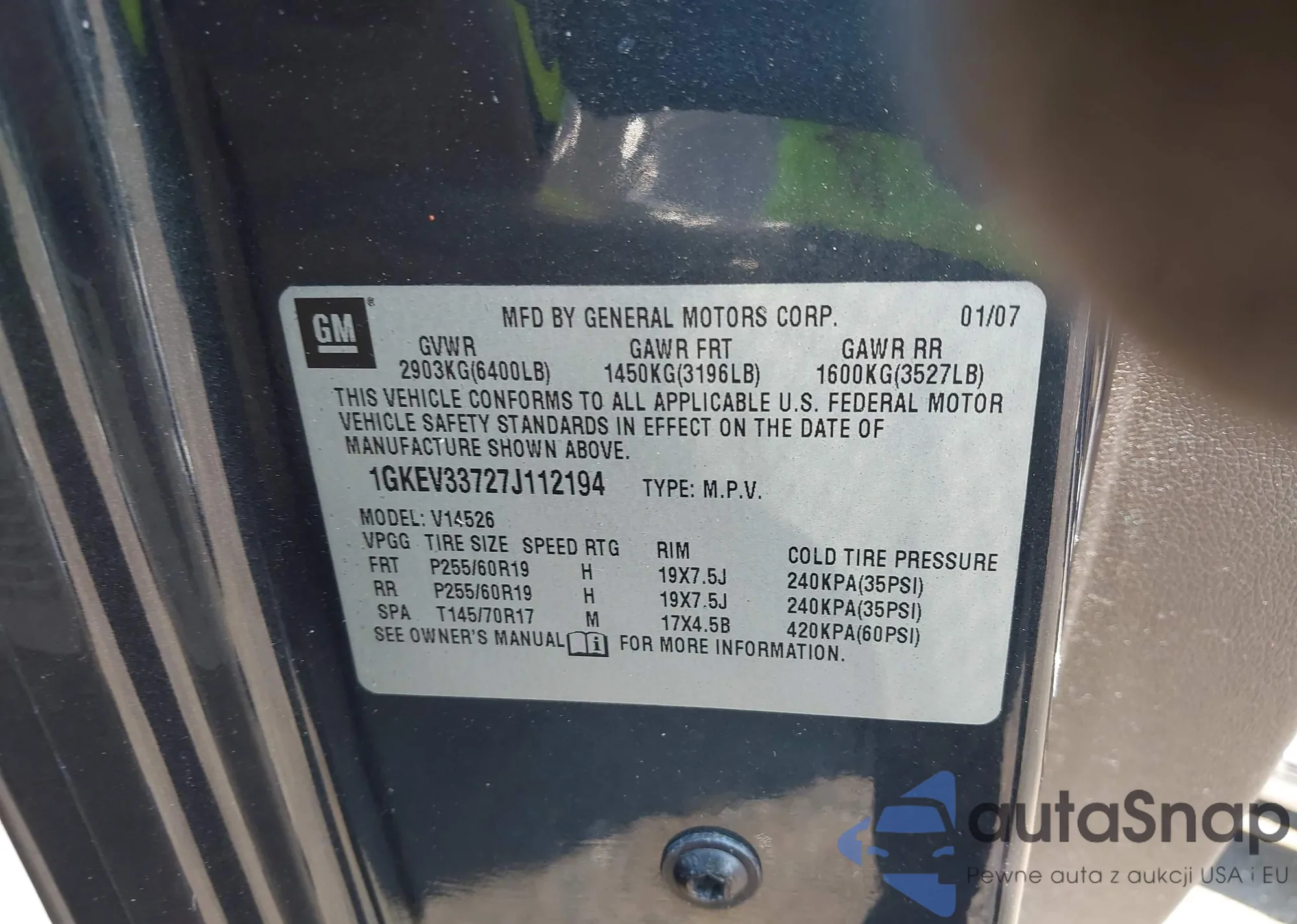 LOT: 42798788 VIN: 1GKEV33727J112194