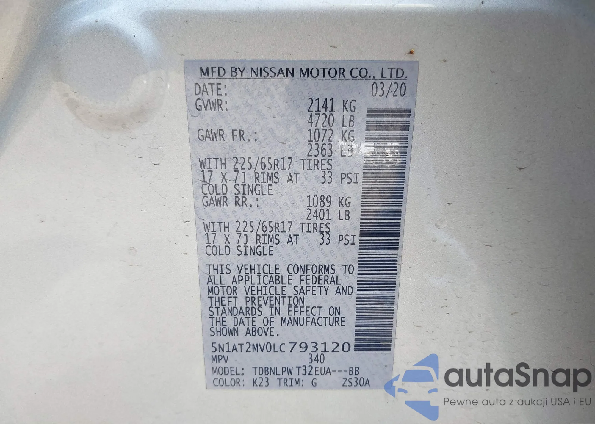 LOT: 42471546 VIN: 5N1AT2MV0LC793120