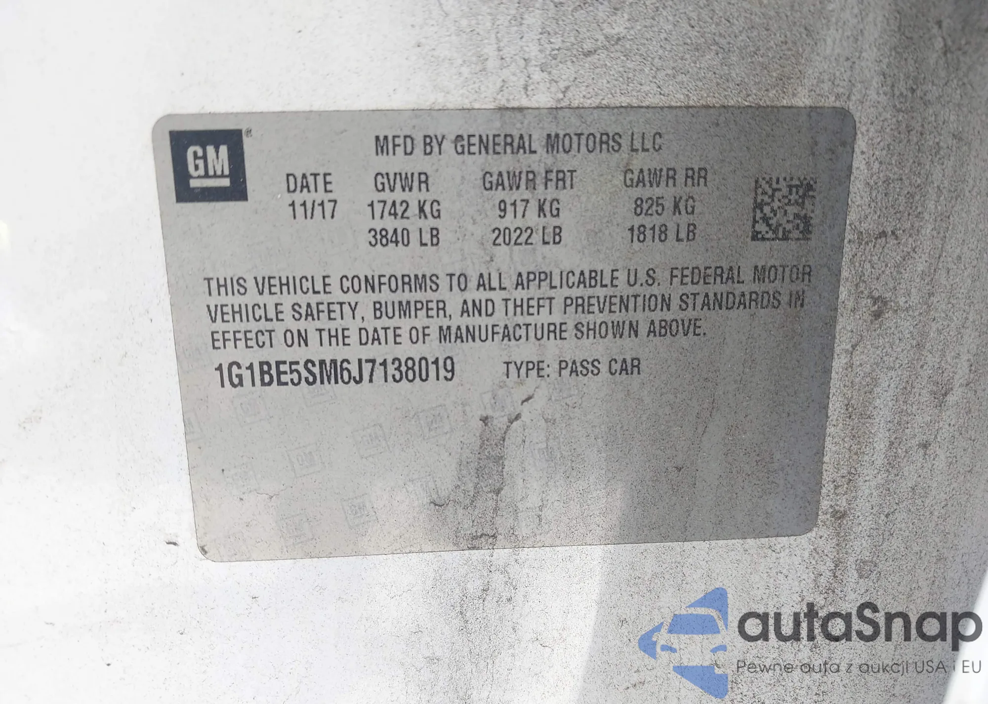 LOT: 42973185 VIN: 1G1BE5SM6J7138019