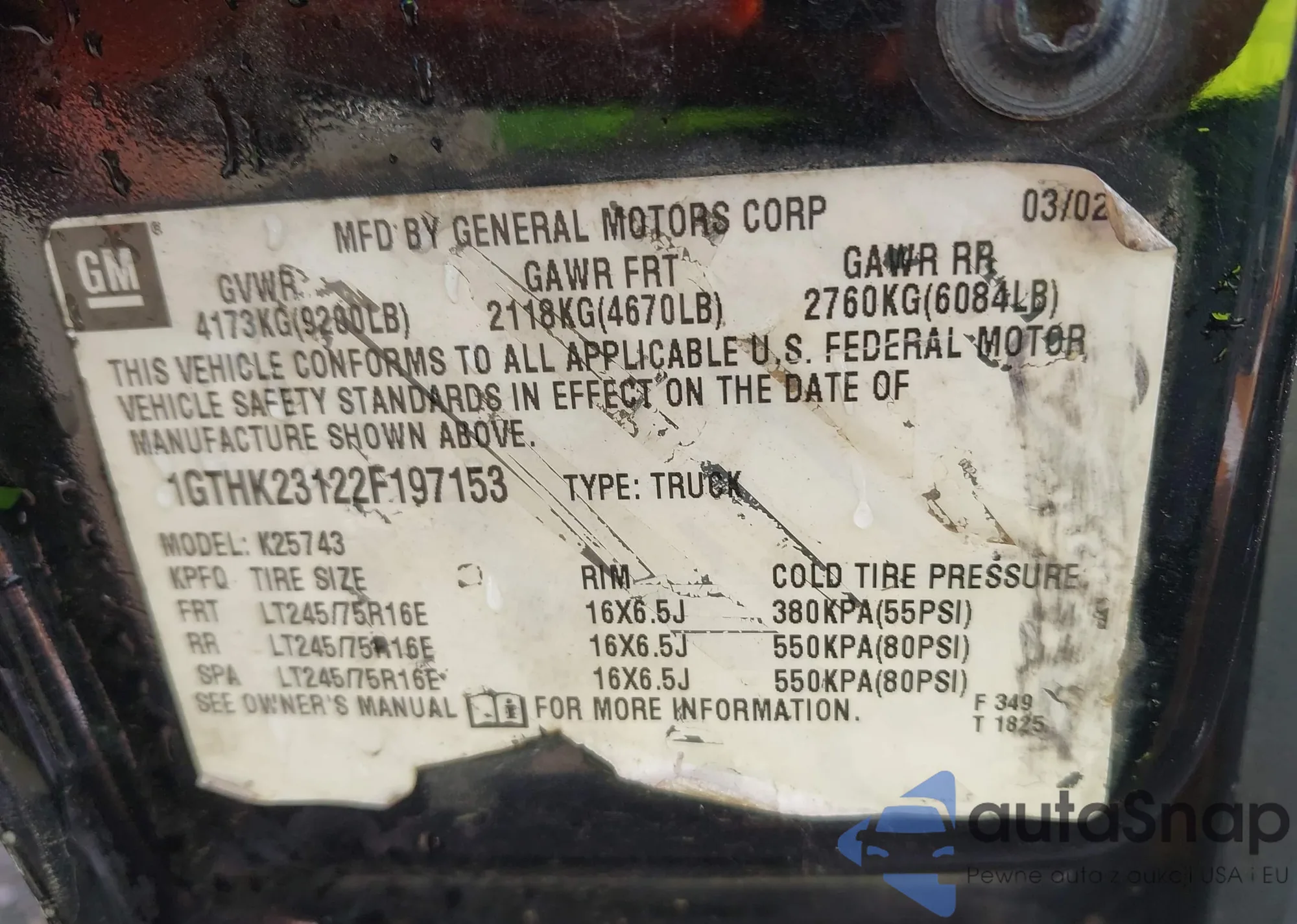 LOT: 43178907 VIN: 1GNDV23E65D118115