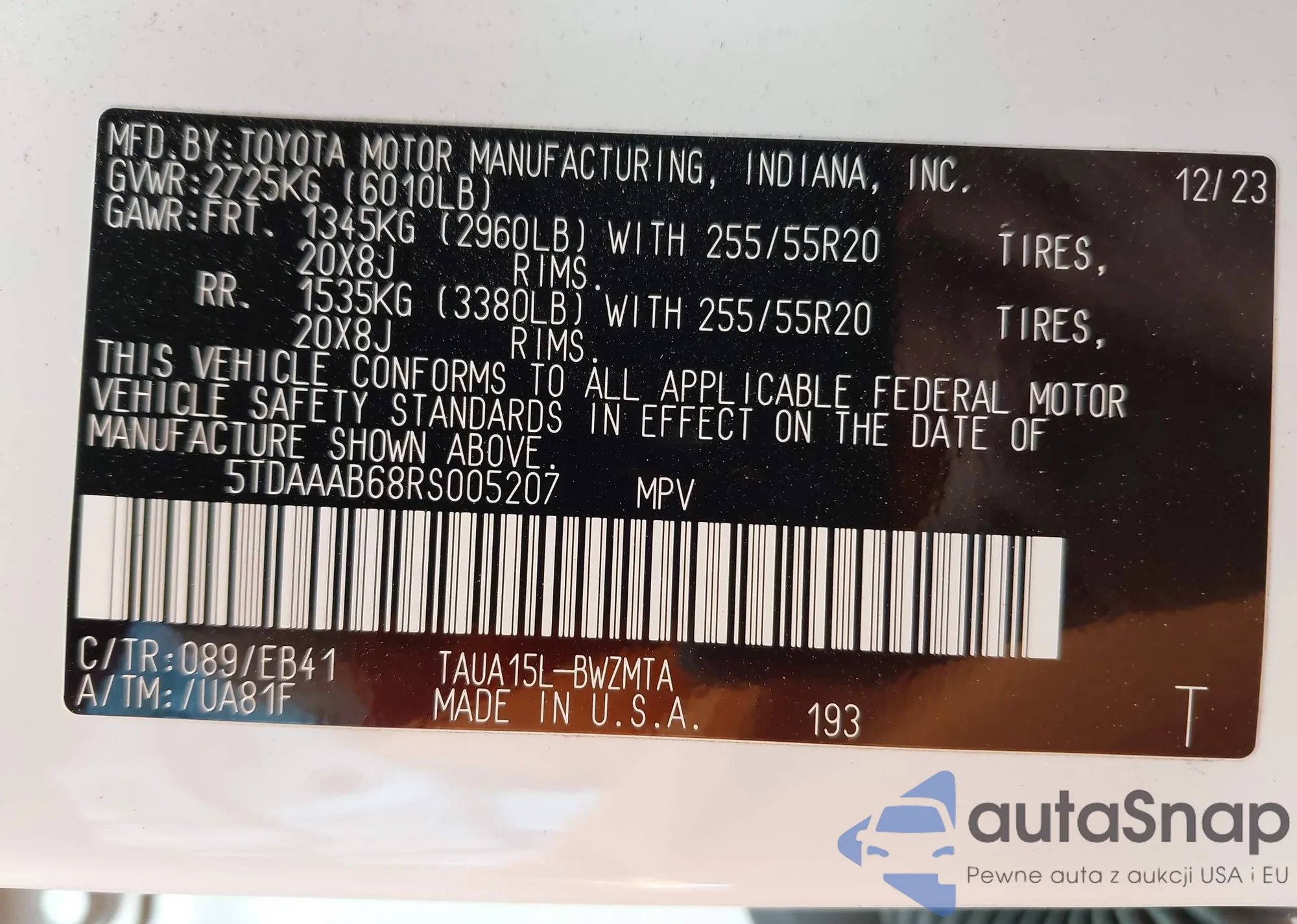 • VIN 5TDAAAB68RS005207