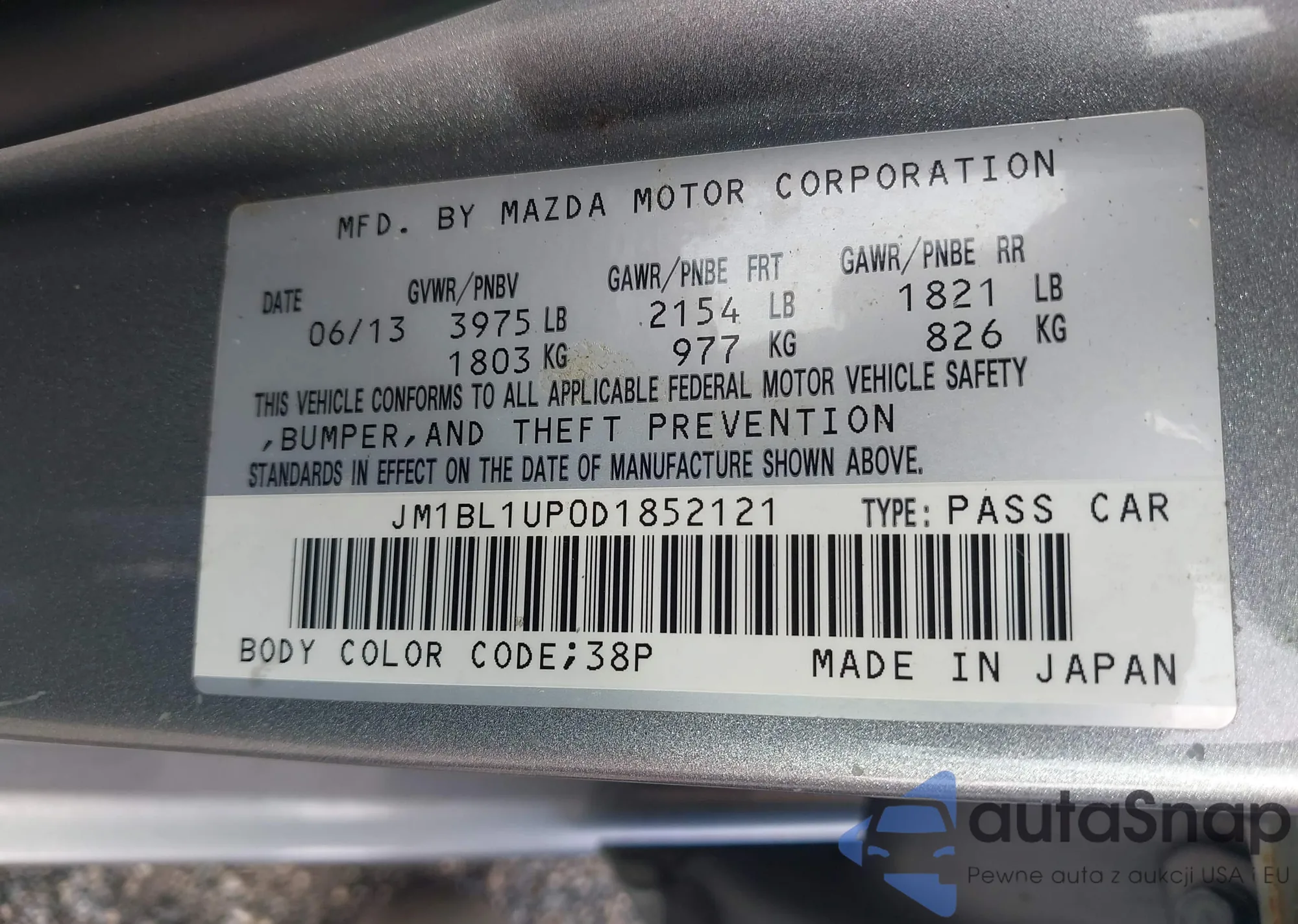 LOT: 43094315 VIN: JM1BL1UP0D1852121