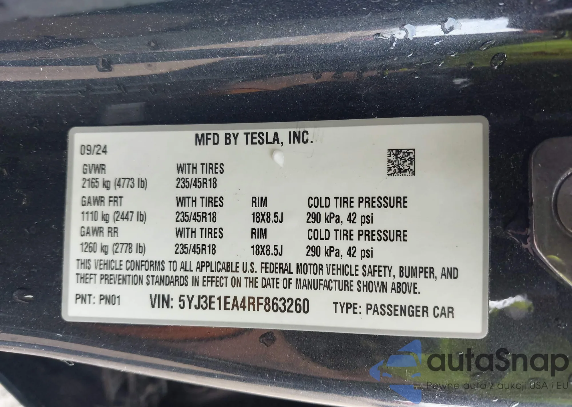• VIN 5YJ3E1EA4RF863260