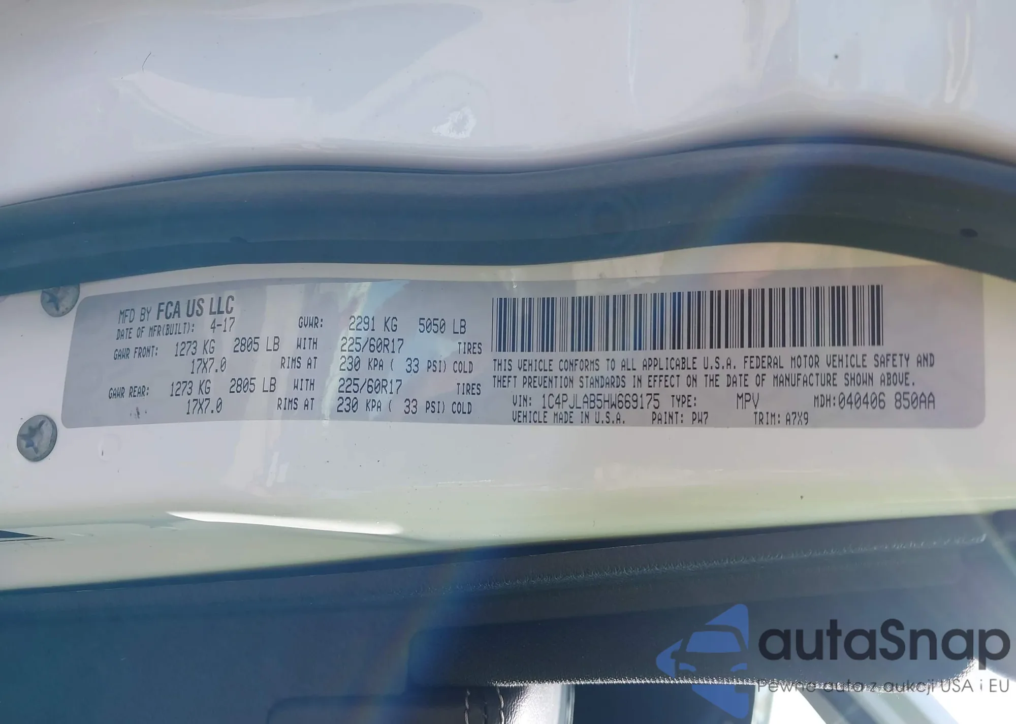• VIN 1C4PJLAB5HW669175