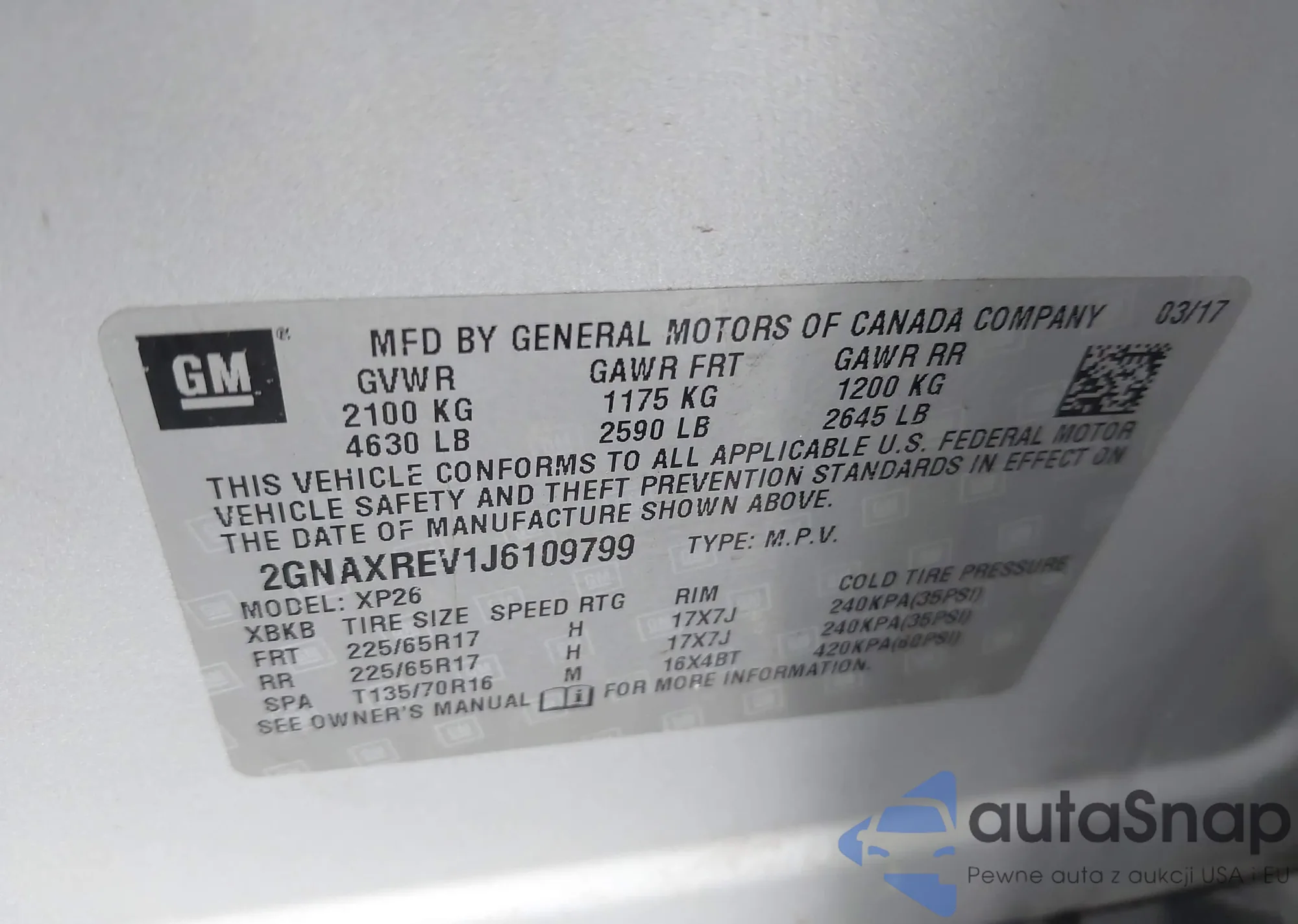 • VIN 2GNAXREV1J6109799