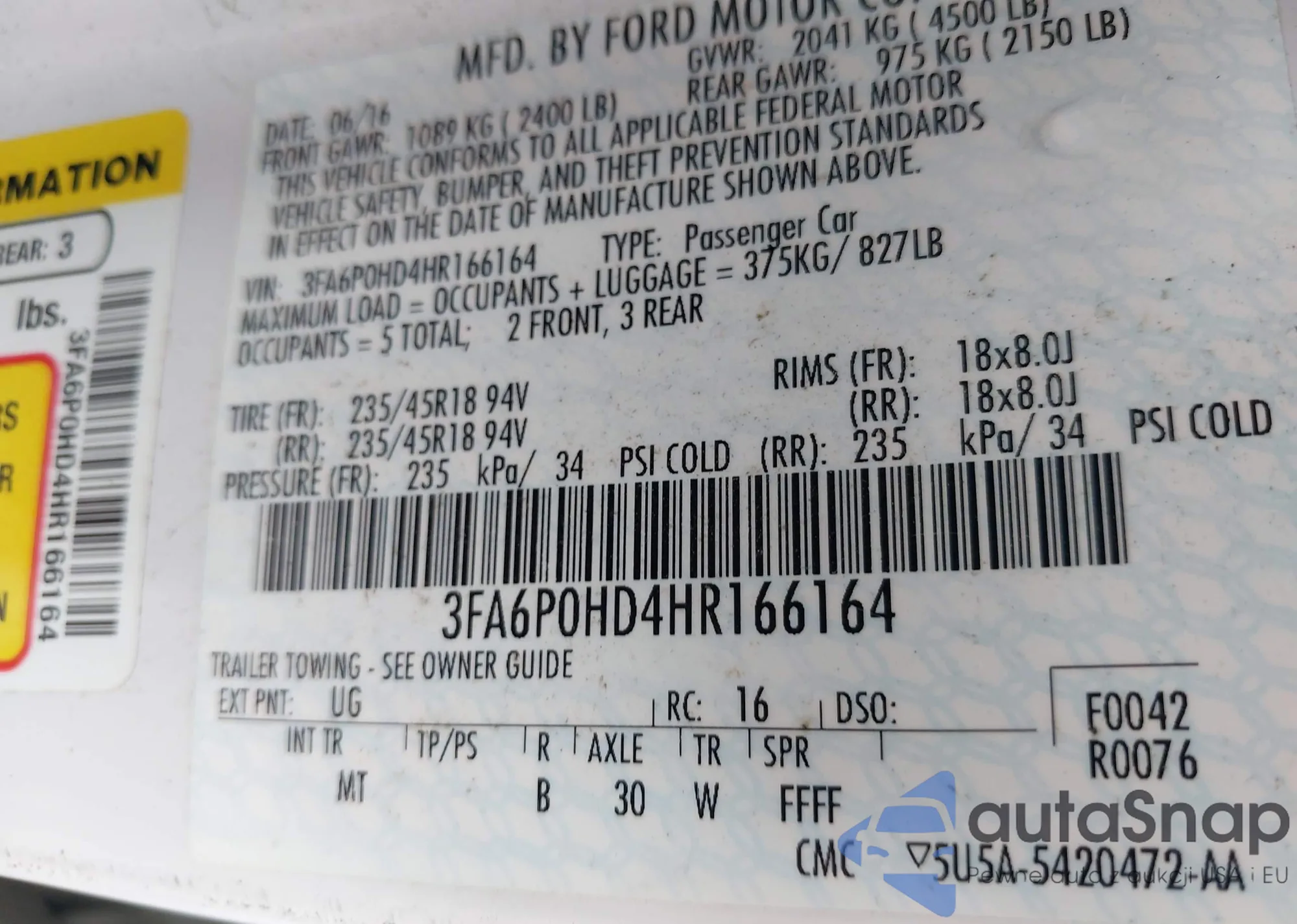 LOT: 42676545 VIN: 3FA6P0HD4HR166164