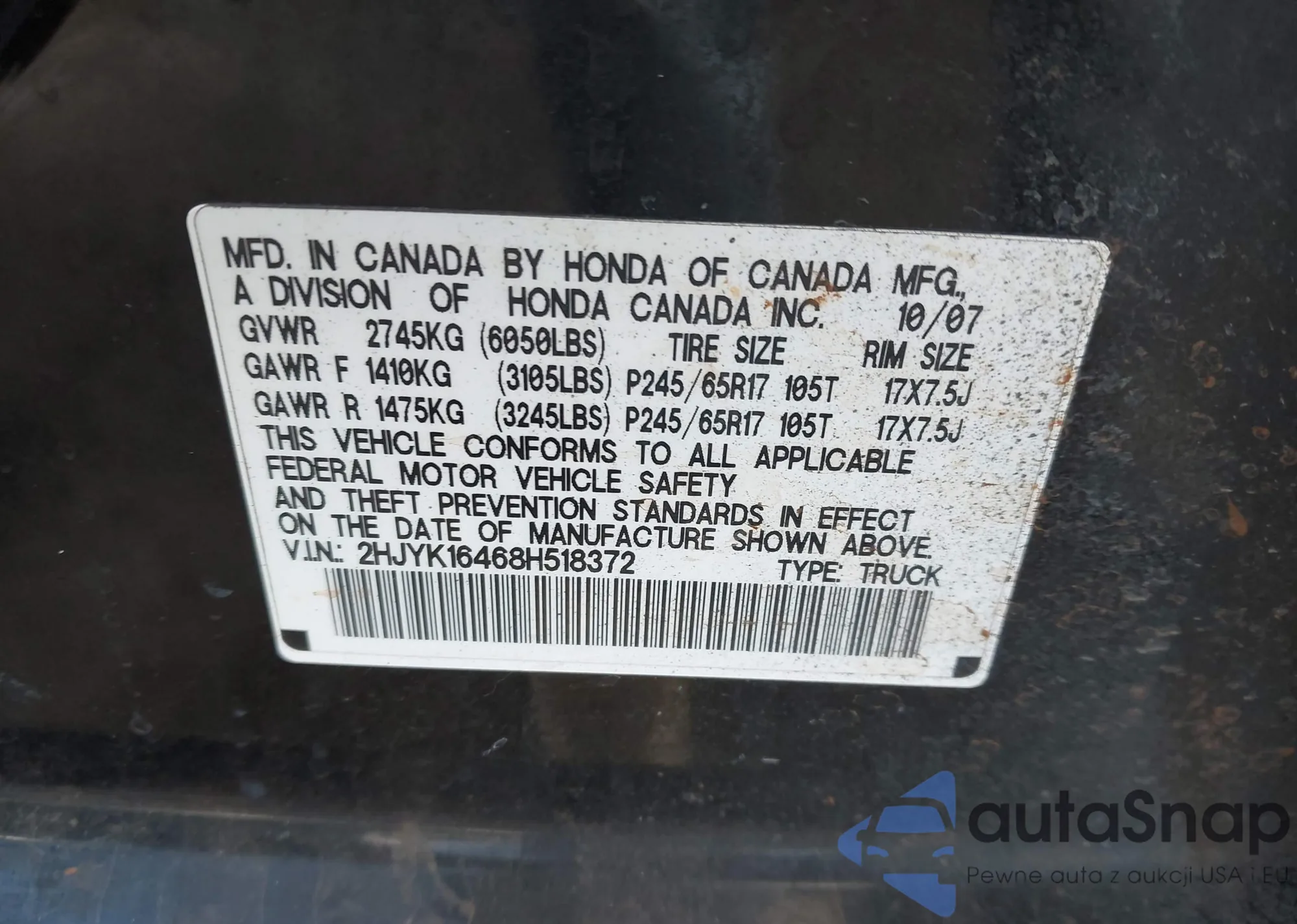 • VIN 2HJYK16468H518372