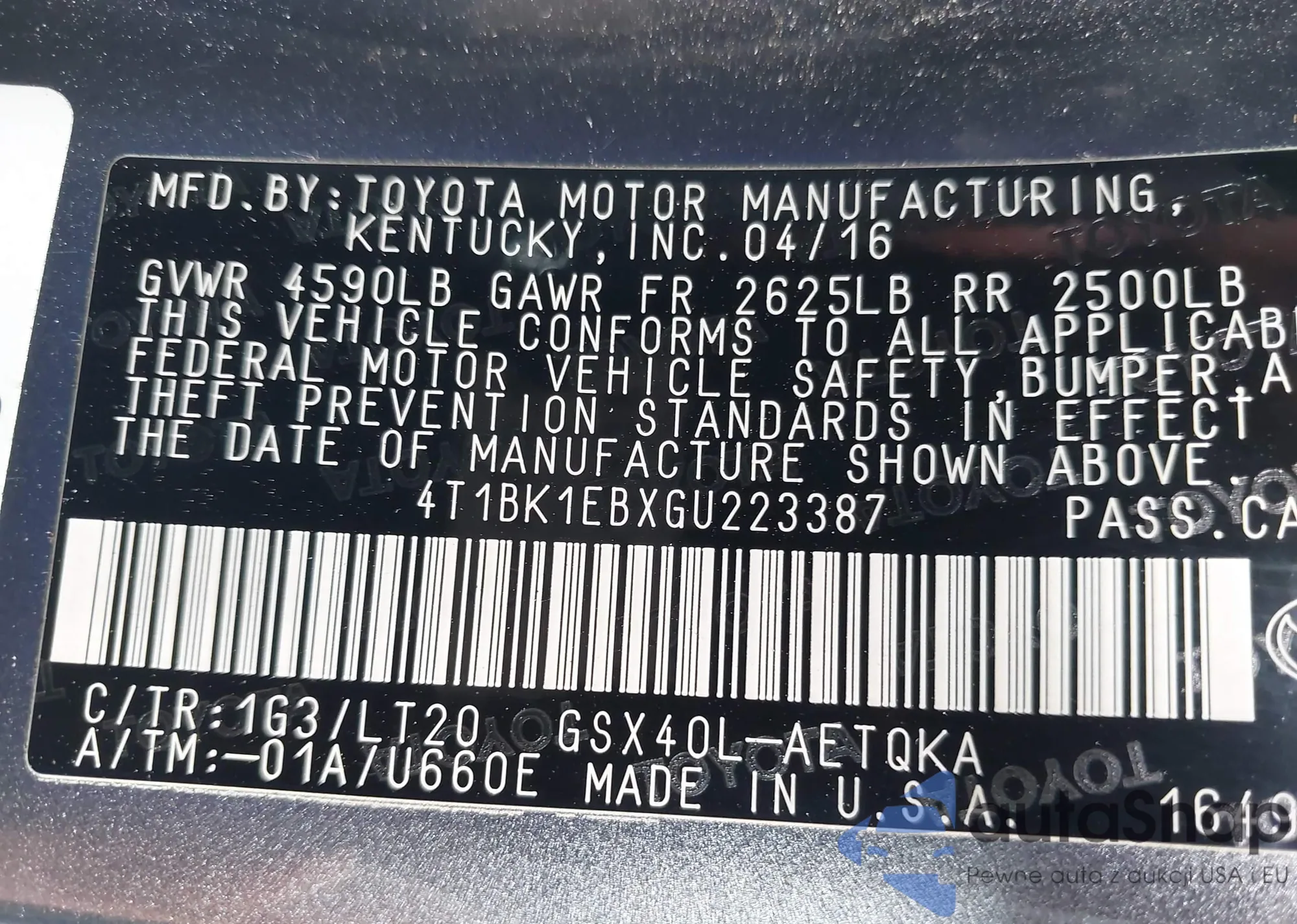 LOT: 43150166 VIN: JTDBT903091302748