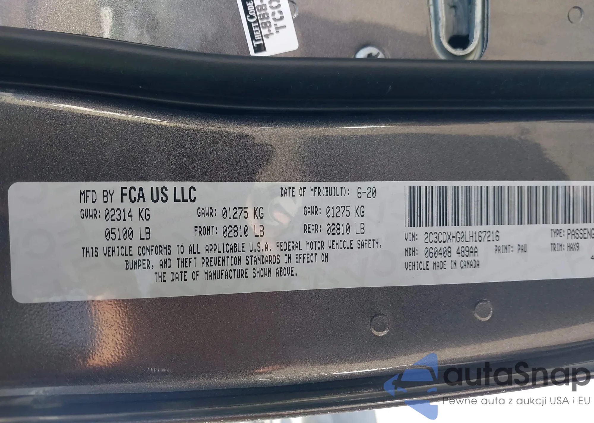 • VIN 2C3CDXHG0LH167216