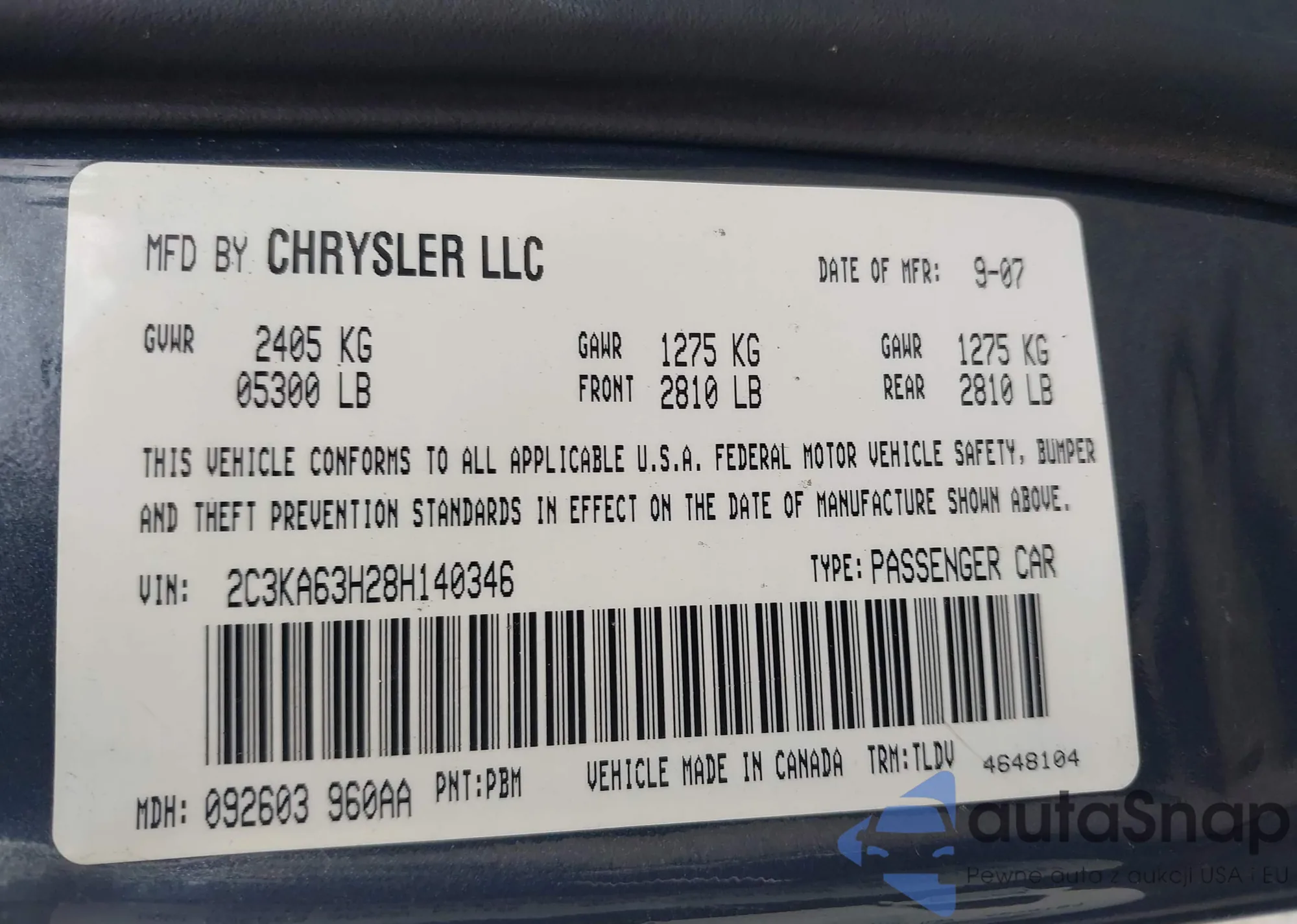 • VIN 2C3KA63H28H140346