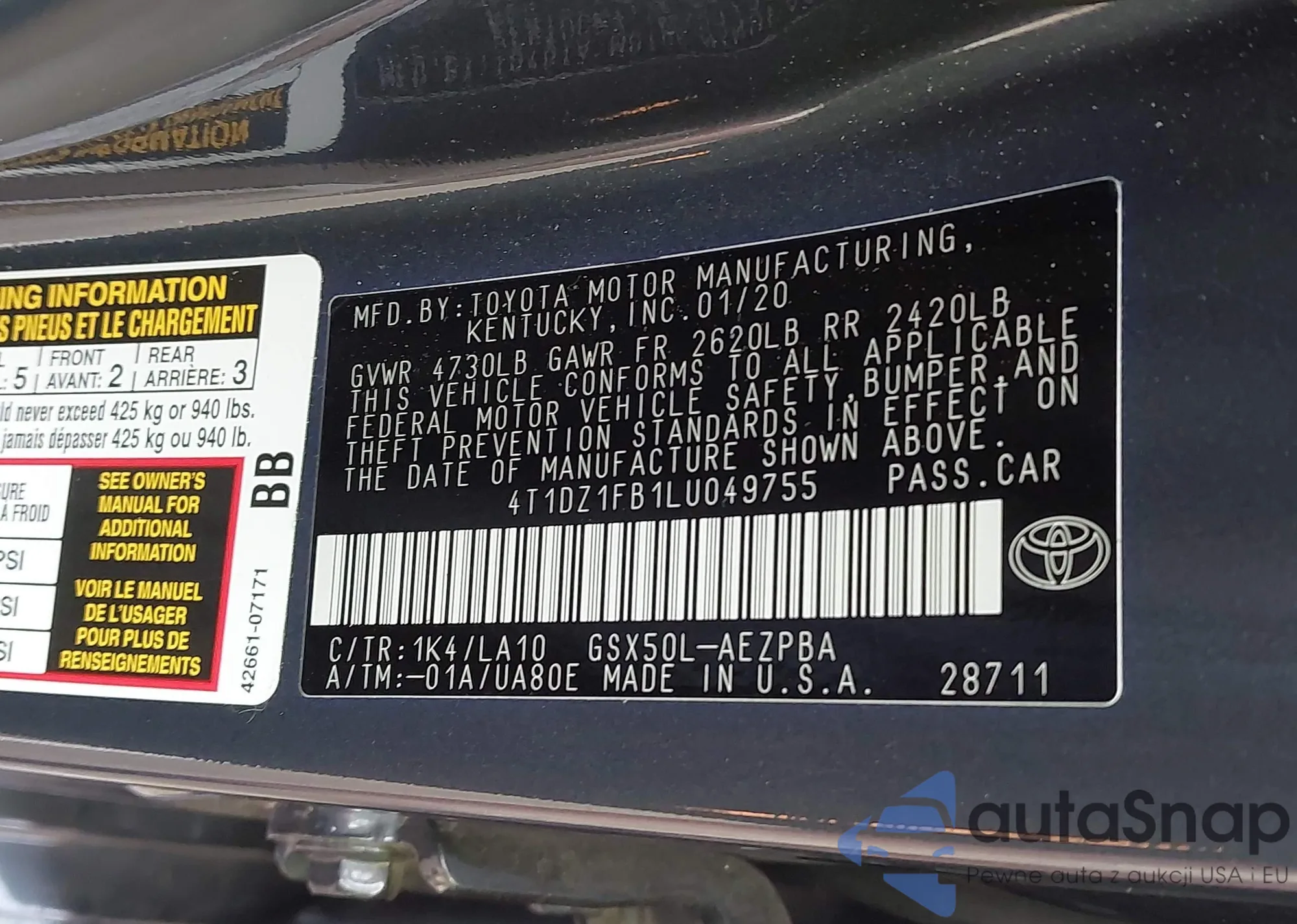 • VIN 4T1DZ1FB1LU049755