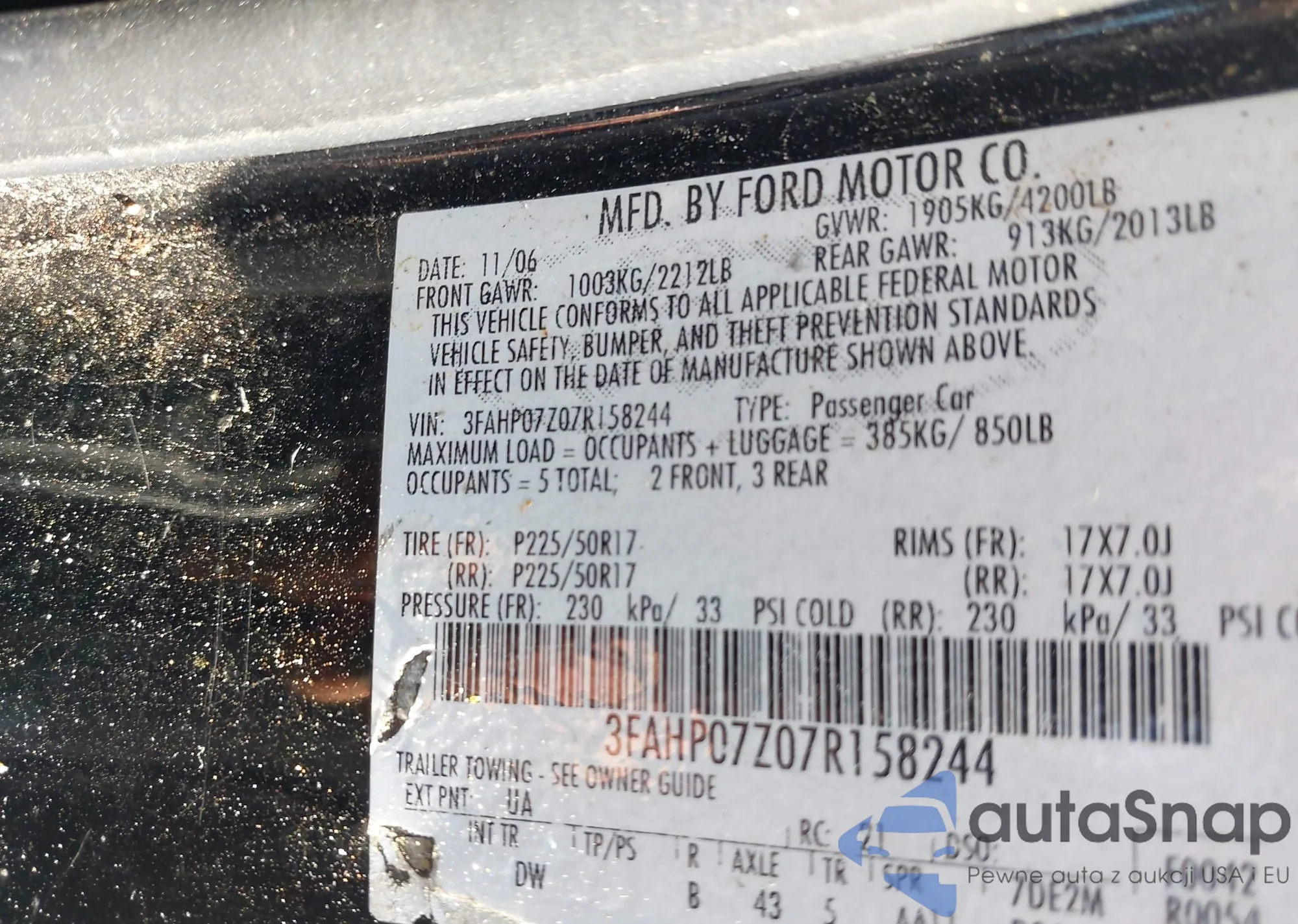 • VIN 3FAHP07Z07R158244