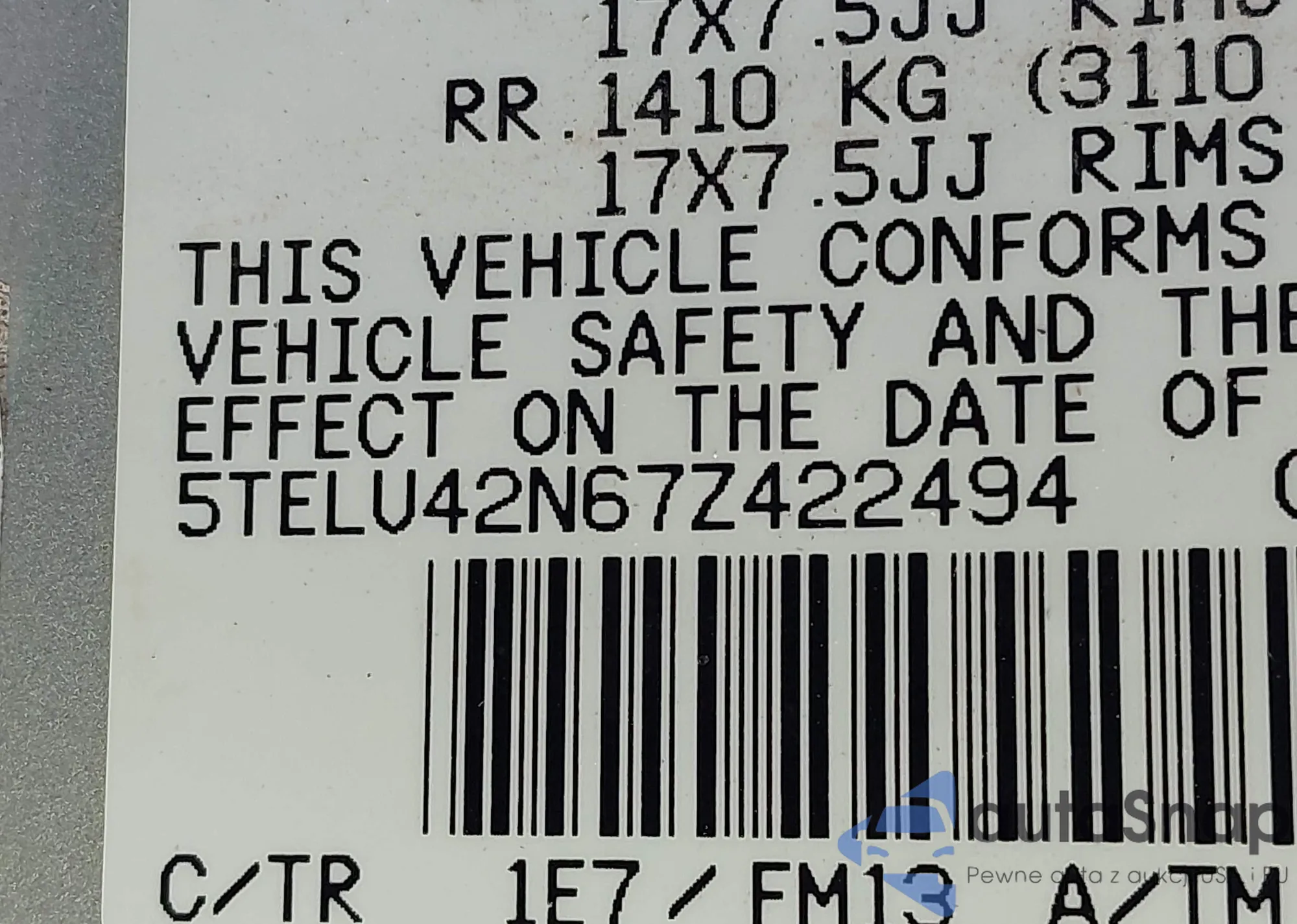 • VIN 5TELU42N67Z422494