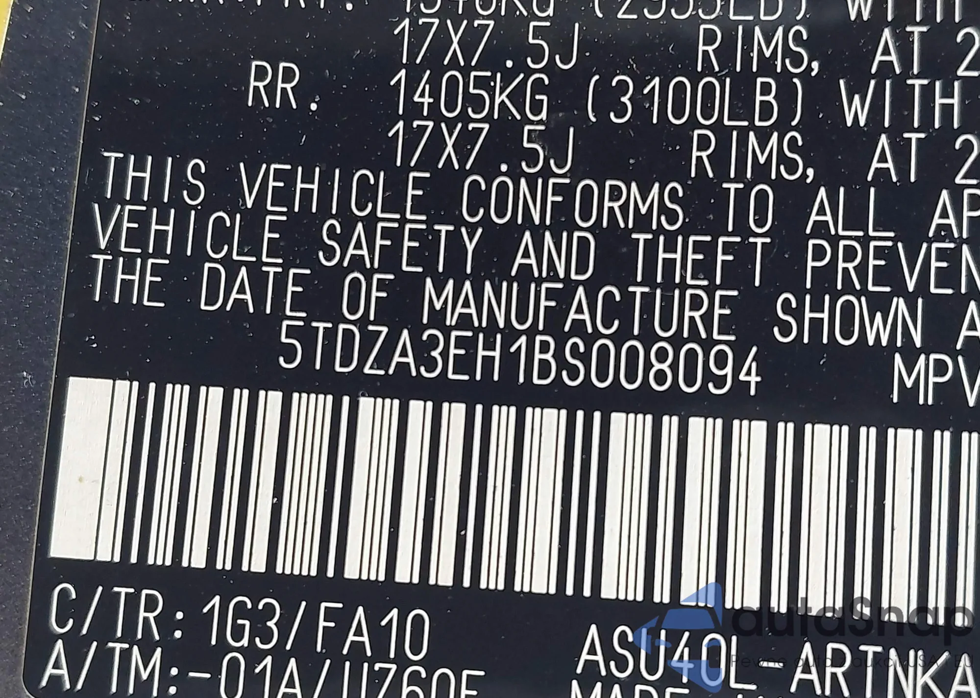 • VIN 5TDZA3EH1BS008094