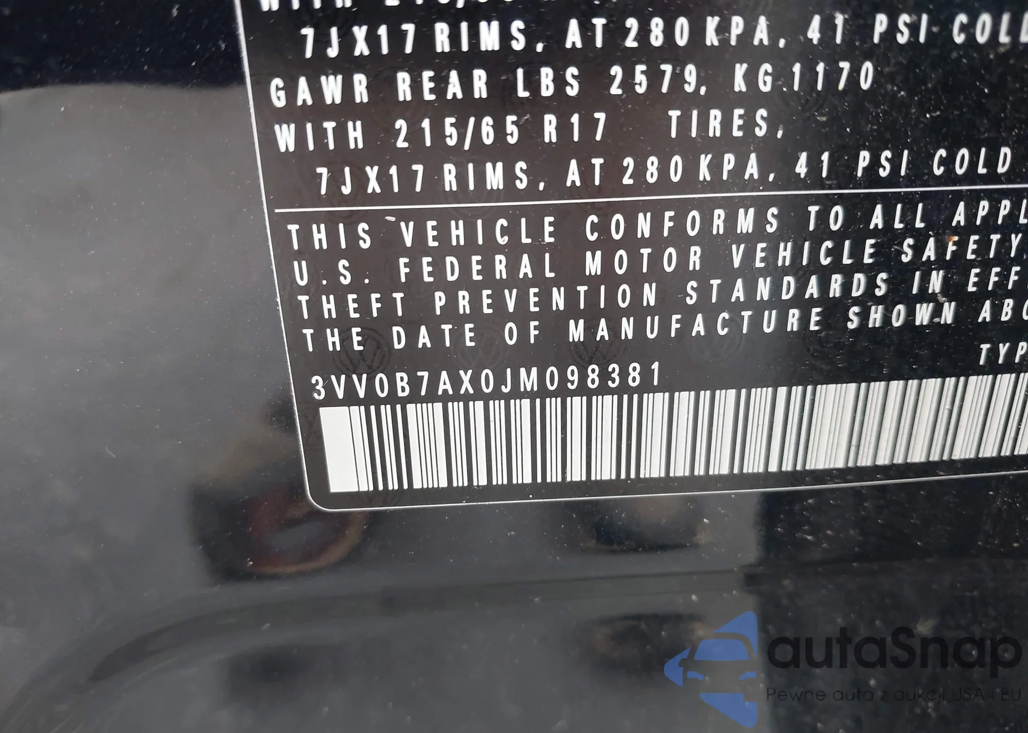 • VIN 3VV0B7AX0JM098381