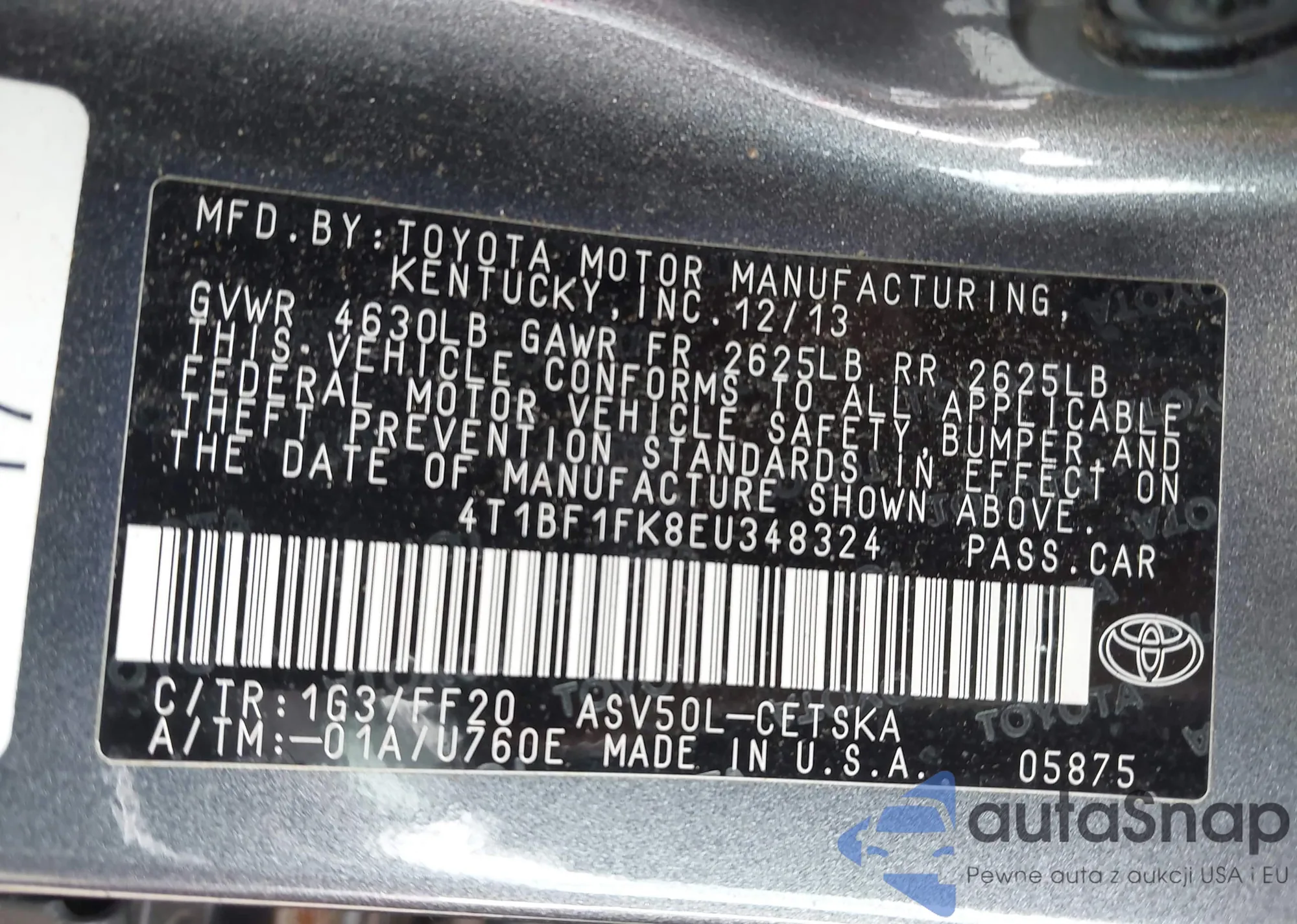 • VIN 4T1BF1FK8EU348324