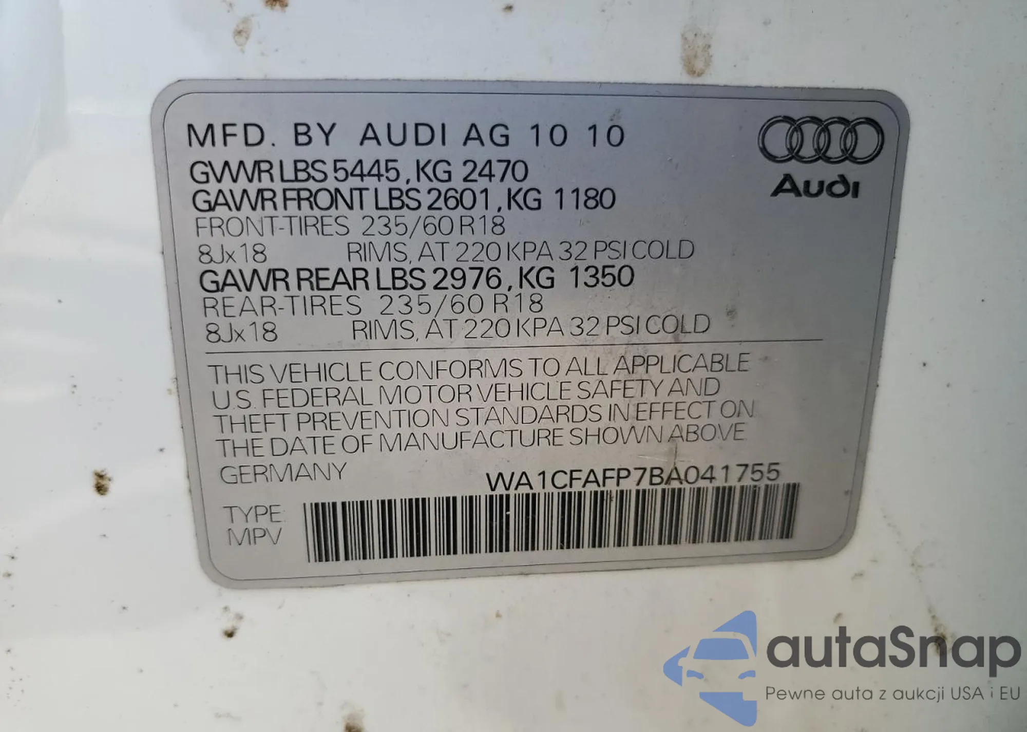 • VIN WA1CFAFP7BA041755