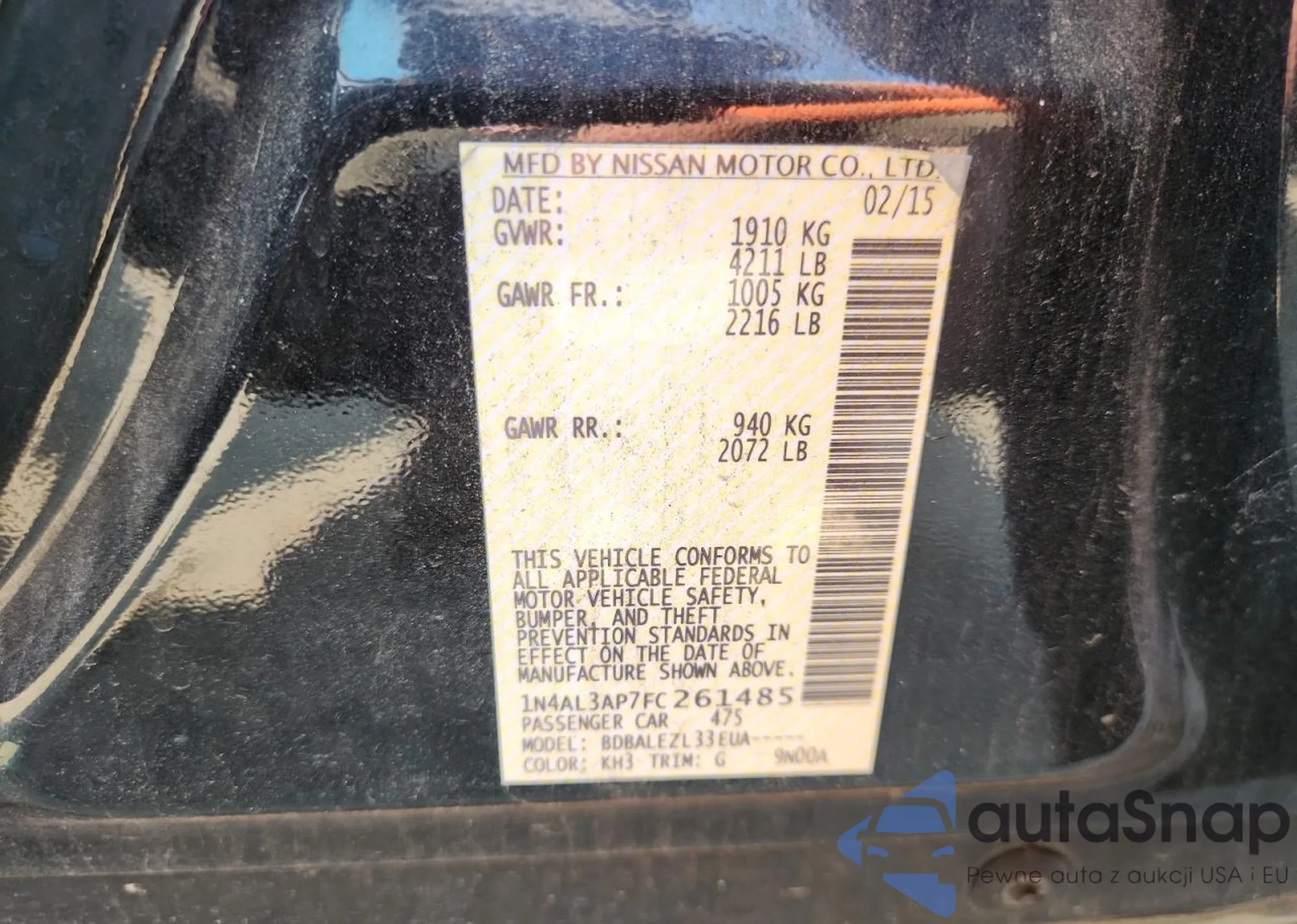 • VIN 1N4AL3AP7FC261485